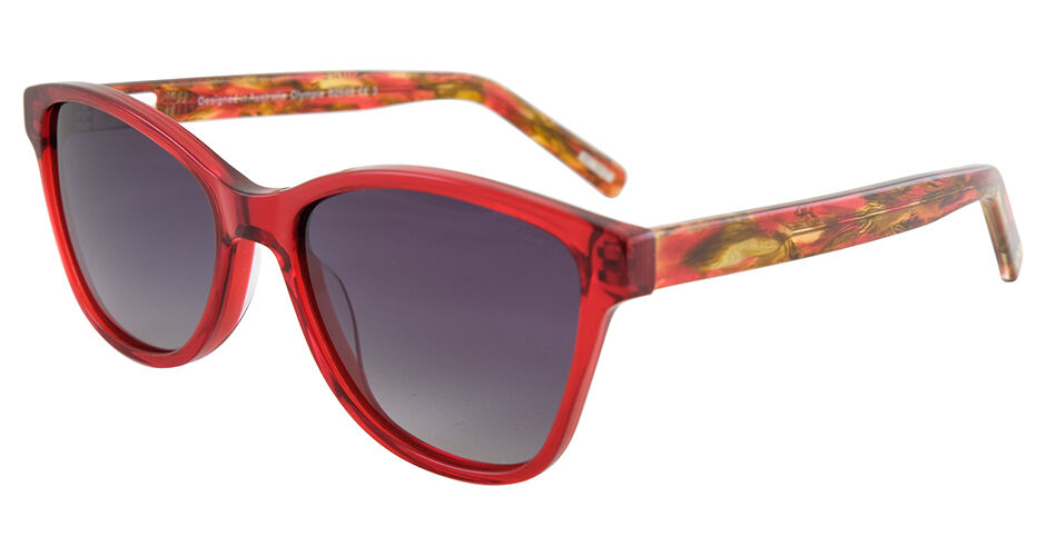 Frame Colour: Red w Red Brown Pattern Lens Colour: Grey Gradient Frame Material: Acetate Lens Material: Polycarbonate Lens Technology: Polarised Lens Category: Category 3 Fit: Medium Shape: Cat-Eye