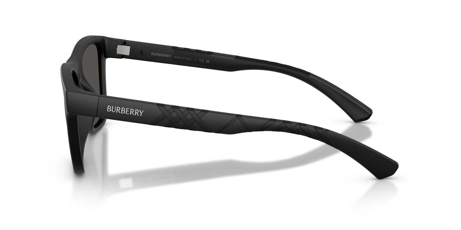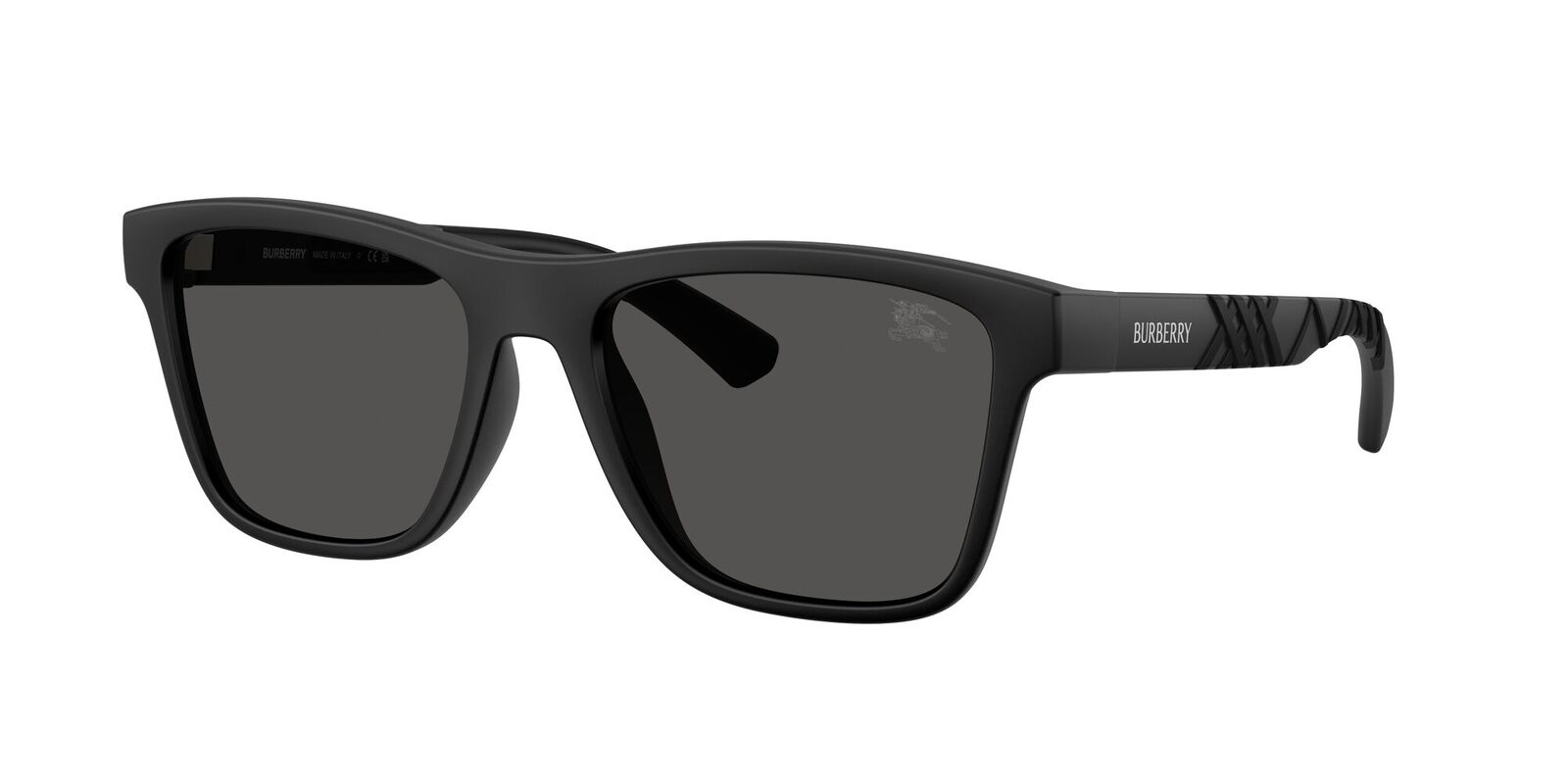 The Burberry BE4482U sunglasses blend modern design with sporty sophistication for the contemporary man. Featuring a sharp square silhouette, the matte black frame is elevated with bi-injected rubber temples subtly showcasing the iconic Burberry check, offering a sleek and refined aesthetic.