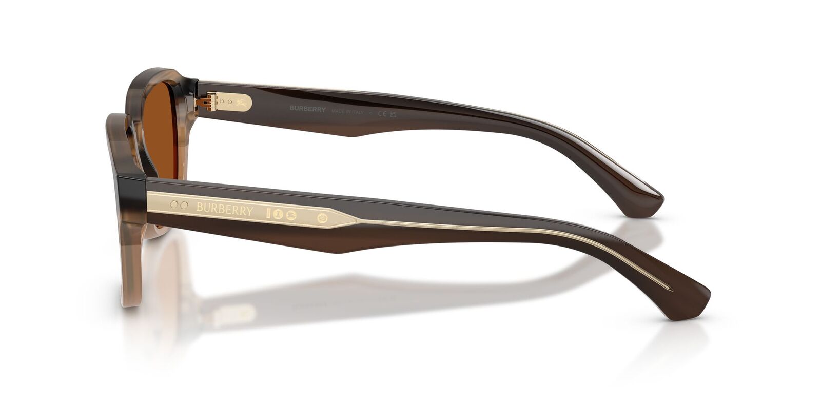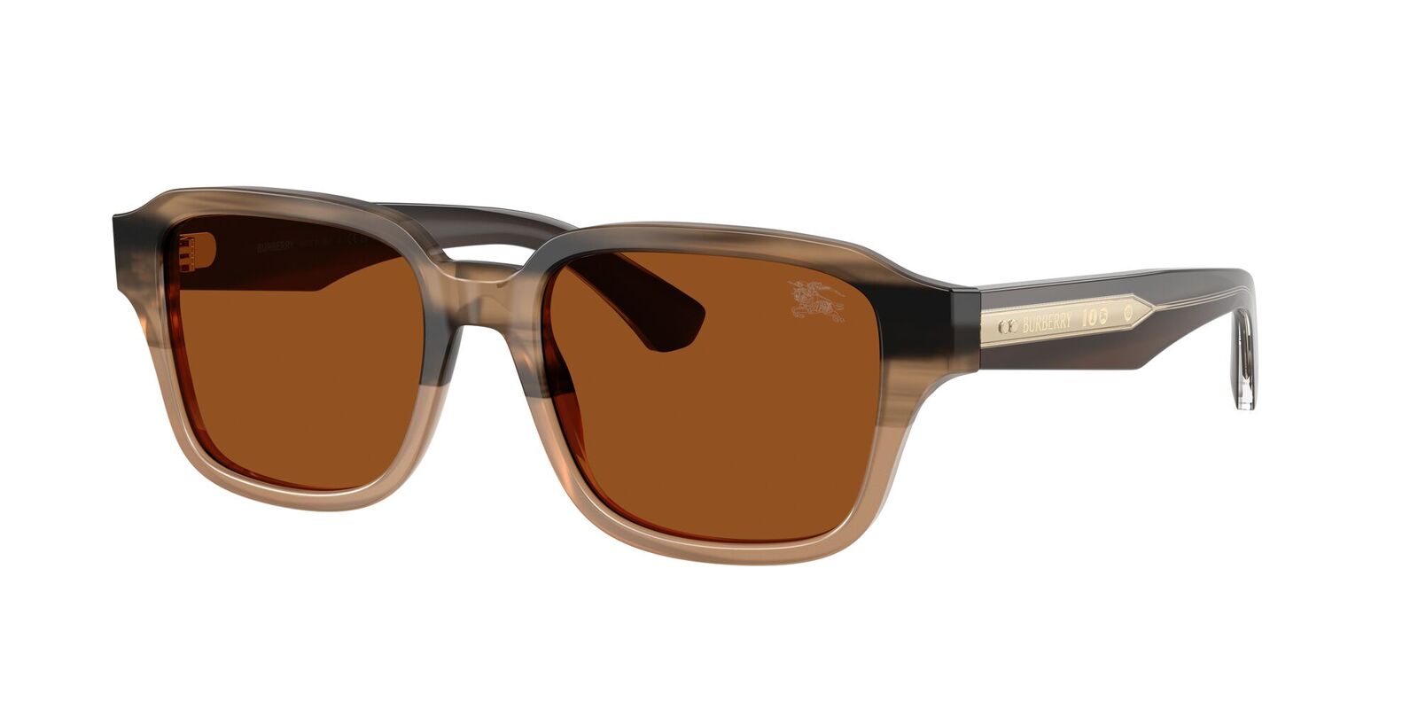 Elevate your style with the Burberry BE4484F square sunglasses. The full-rim beige acetate frames showcase sharp angles and strong lines for a sophisticated, modern look. Designed with a low bridge fit, these beige sunglasses feature an innovative layered temple design, revealing a polished metal core engraved with iconic Burberry branding beneath a transparent acetate layer. The bio-based acetate contains at least 50% renewable, plant-derived materials, making it a sleek and sustainable choice. Finished with classic brown lenses for a timeless appeal.