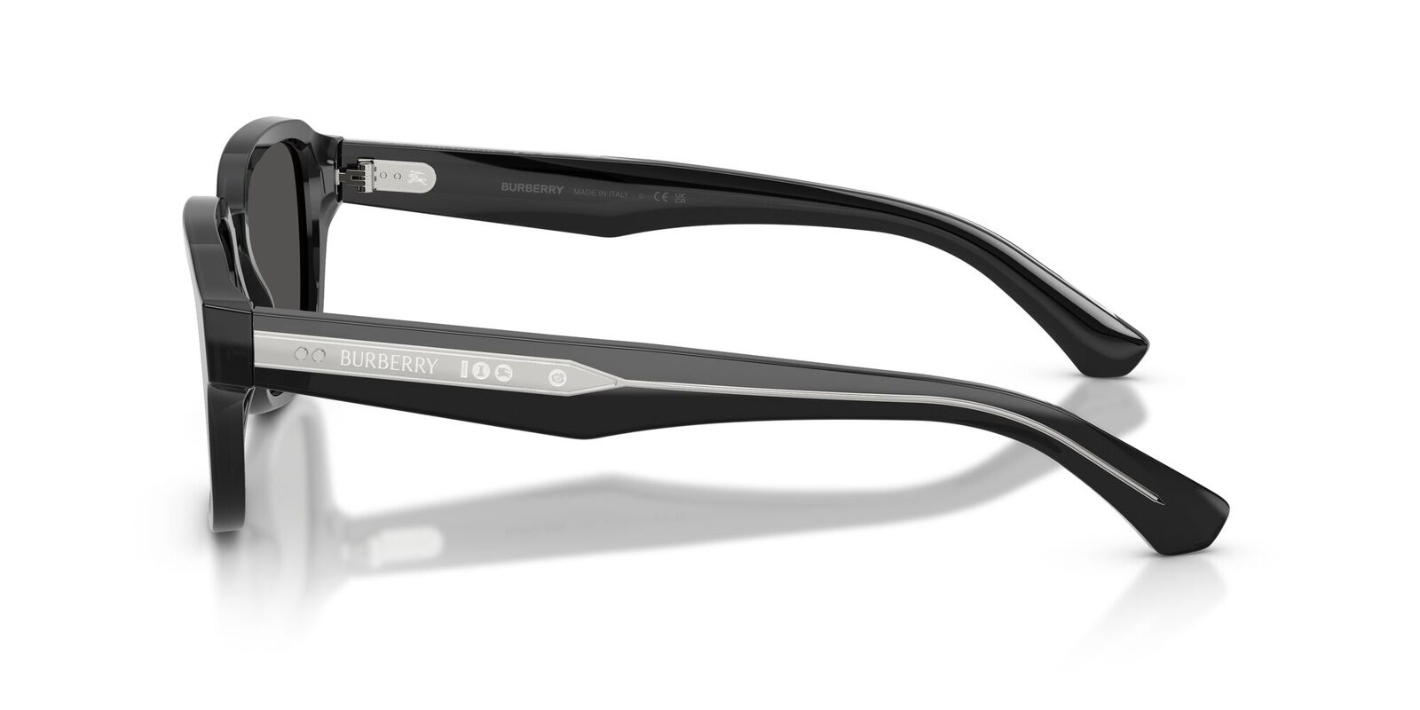 Add a touch of modern sophistication to your everyday ensemble with the Burberry BE4484 sunglasses. Fusing contemporary design with sustainable craftsmanship, this men's design boasts an elegant square silhouette crafted from bio-based acetate containing at least 50% plant-derived renewable content. An innovative tempe design reveals a polished silver metal core engraved with iconic Burberry logos and hallmarks for instant brand prestige.