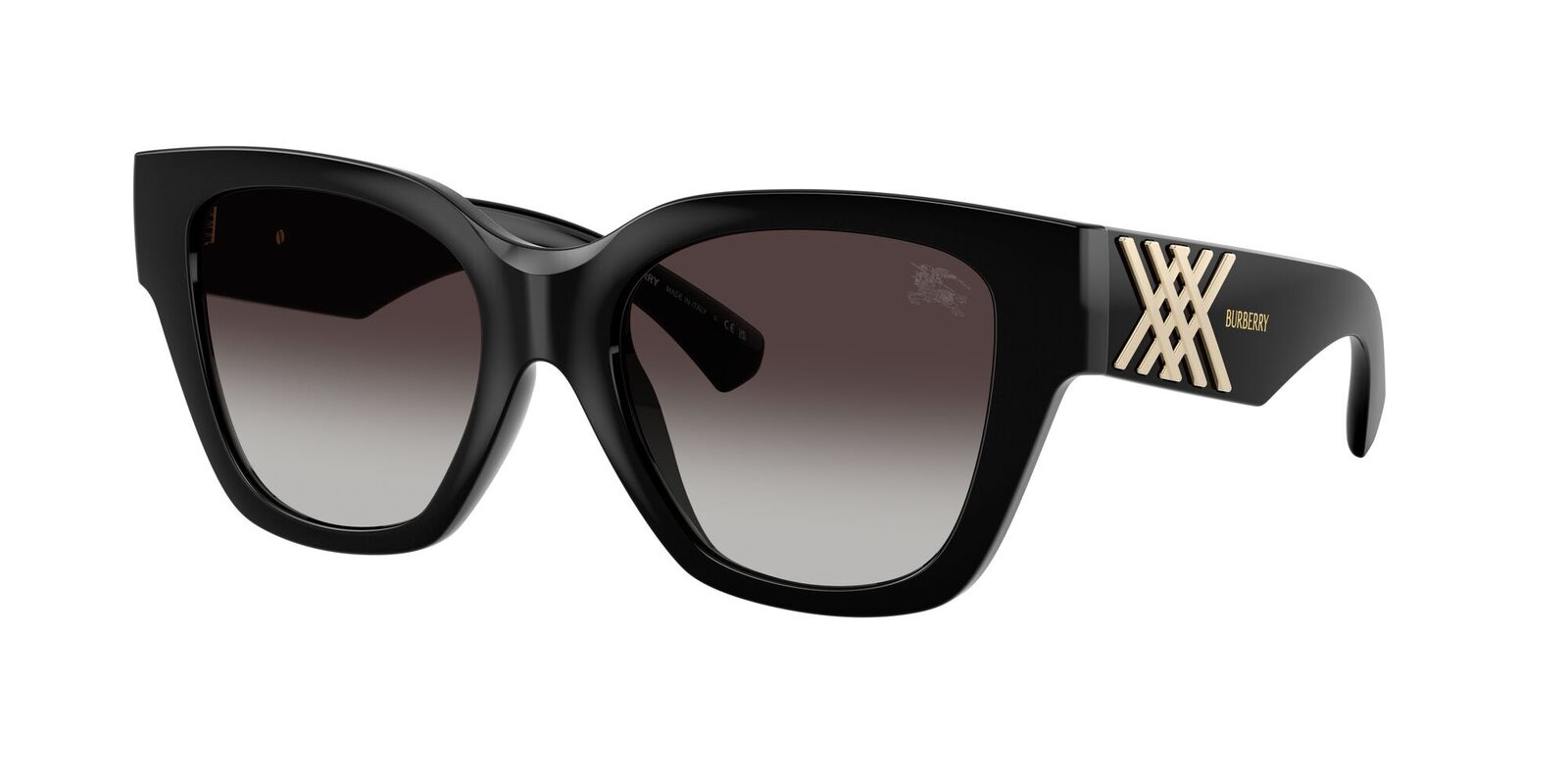 The Burberry BE4489U sunglasses are the perfect accessory for those who appreciate timeless glamour with contemporary depth. Boasting a chic square silhouette, this classic black frame is crafted from bio-based nylon containing at least 45% plant-derived renewable materials, offering a lightweight fit with a sustainable edge. For a luxurious finish, the BE4489U sunglasses are accented with a textured gold metal check on either side, creating a radiant contrast that pays homage to Burberry's iconic heritage.
