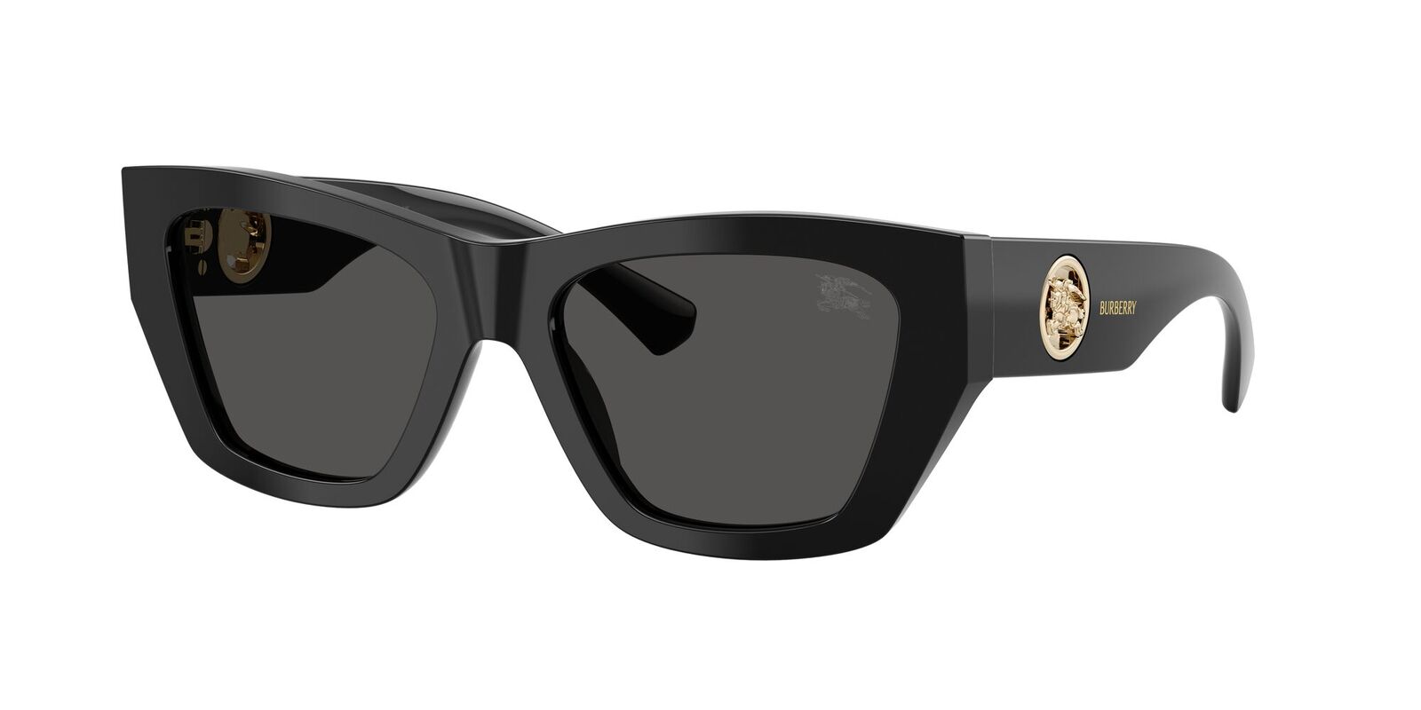 The Burberry BE4492 sunglasses are a polished statement piece designed to bring understated glamour to your everyday look. Featuring a striking cat-eye silhouette, this design captures Burberry's signature balance of heritage and innovation with a sustainable twist. The sleek black frame is crafted from bio-based acetate containing at least 50% plant-derived renewable materials, offering a lightweight yet luxurious feel. At the temples, a sculptural cutout metal Equestrian Knight Design creates a bold focal point for instant brand prestige.