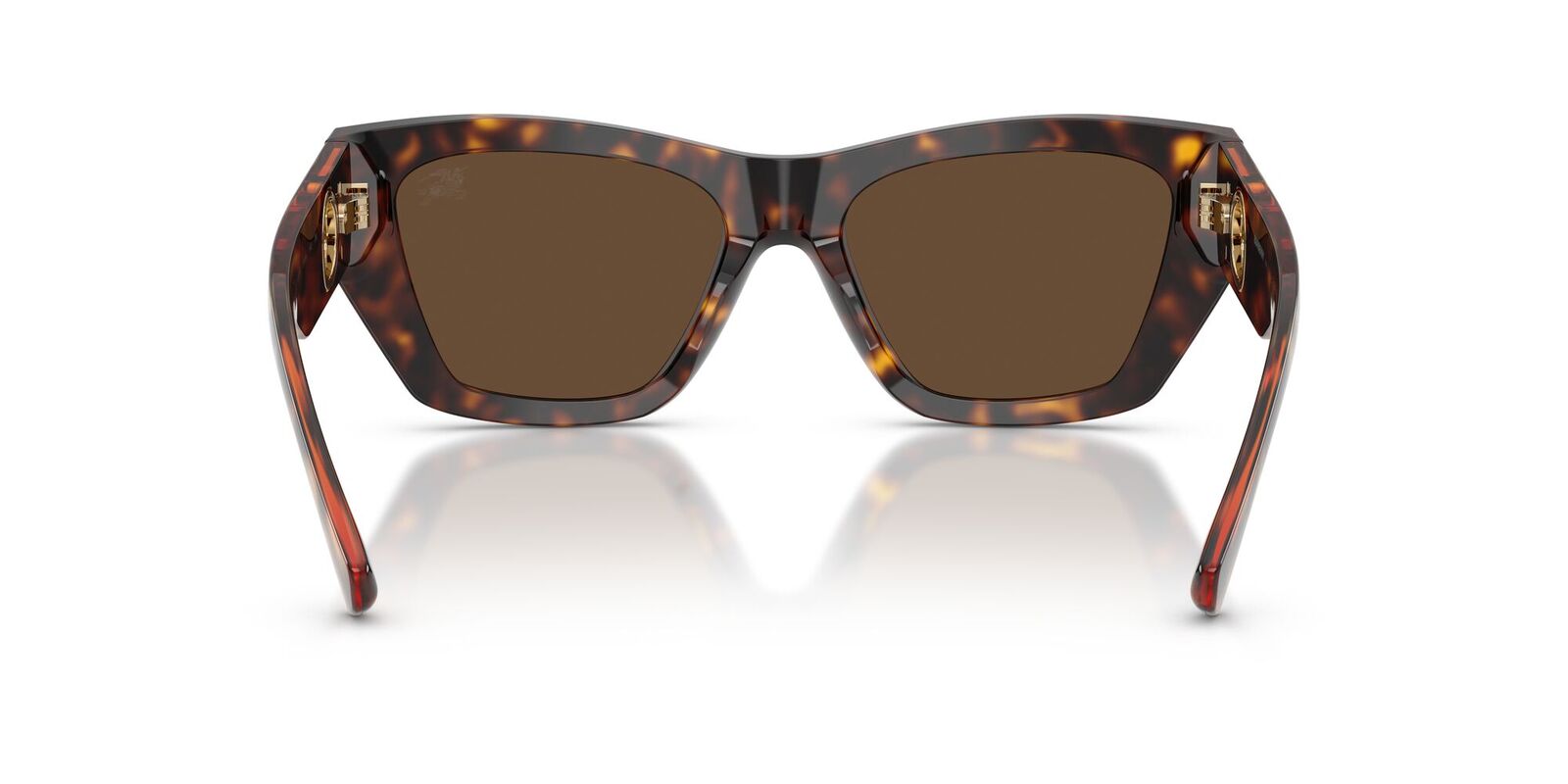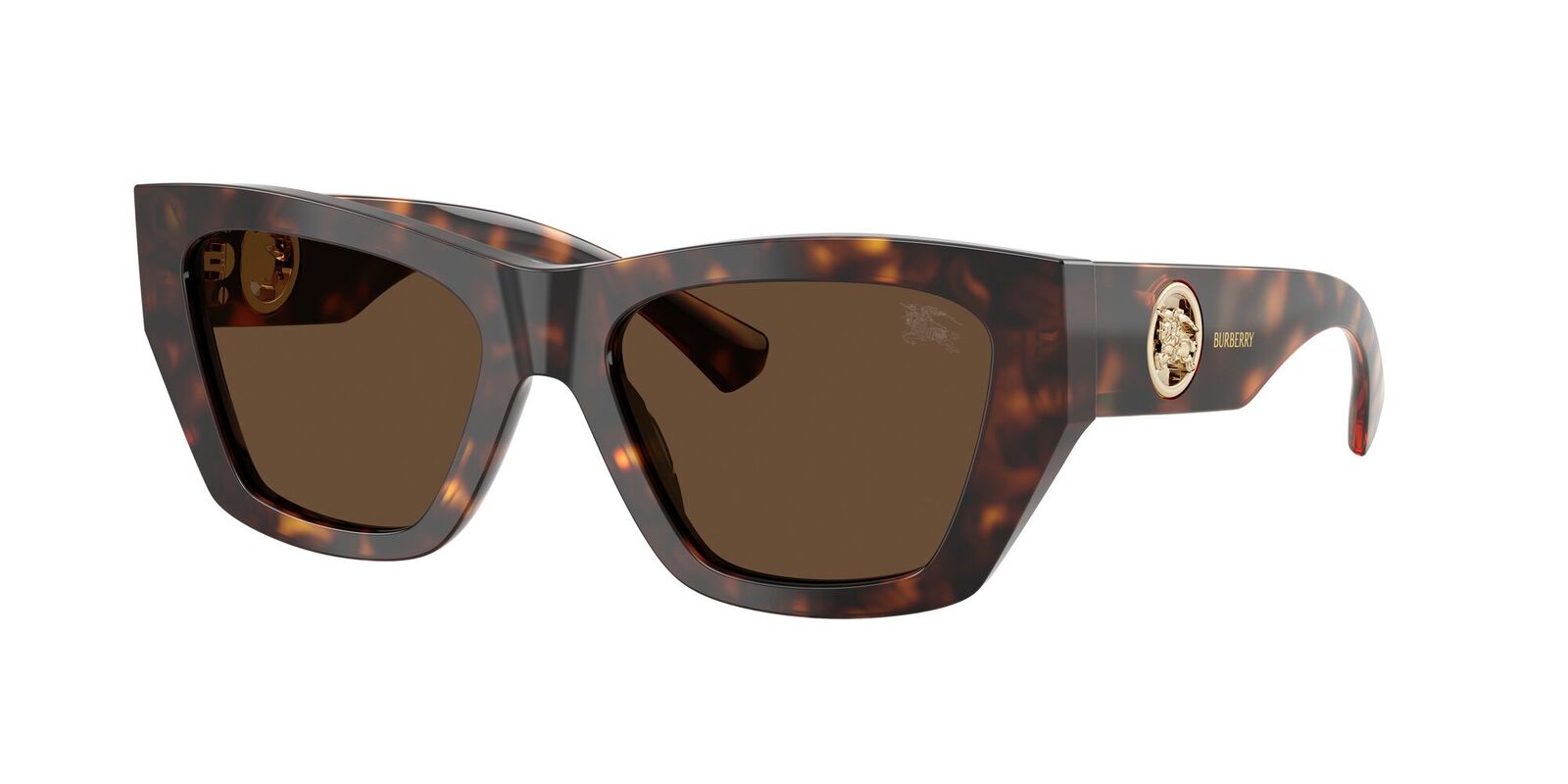 Meet the BE4492 sunglasses by Burberry, a sophisticated statement piece designed to enhance every ensemble with a subtle touch of luxury. Boasting a feminine cat-eye silhouette, this design exudes warmth and understated glamour. Rendered in a rich dark havana hue, this style is expertly crafted from bio-based acetate with at least 50% plant-derived renewable content, paired with bio-nylon temples containing at least 45% plant-based materials. The temples are adorned with a cutout metal Equestrian Knight Design, offering a luminous heritage accent that elevates the silhouette.