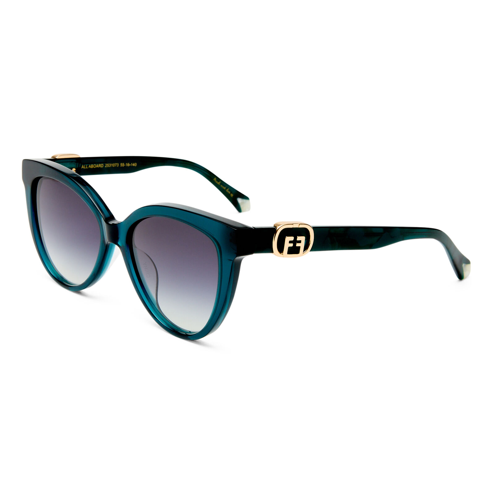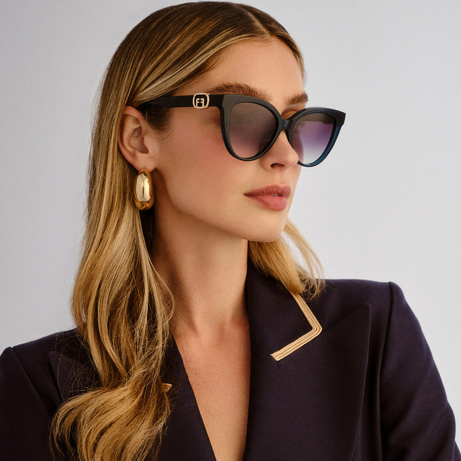 The Camilla All Aboard is an oversized cat-eye design that radiates opulence and confidence. With its bold silhouette and wide acetate temples, this statement frame captures the spirit of modern luxury and feminine strength. Handcrafted from premium acetate, it features striking oversized CF badge hardware on both temples, an unmistakable mark of Camilla’s distinctive glamour.