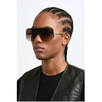 These sunglasses are a clear reference to the stylistic elements that have defined the Carrera aesthetic over the years, evolving into a futuristic key for this style. The single shield lens has a half-rim frame that's flat along the top, plus the Carrera flag and ‘C’ logo placed front and centre. The metal temples are trimmed by the brand’s logo and signature colours