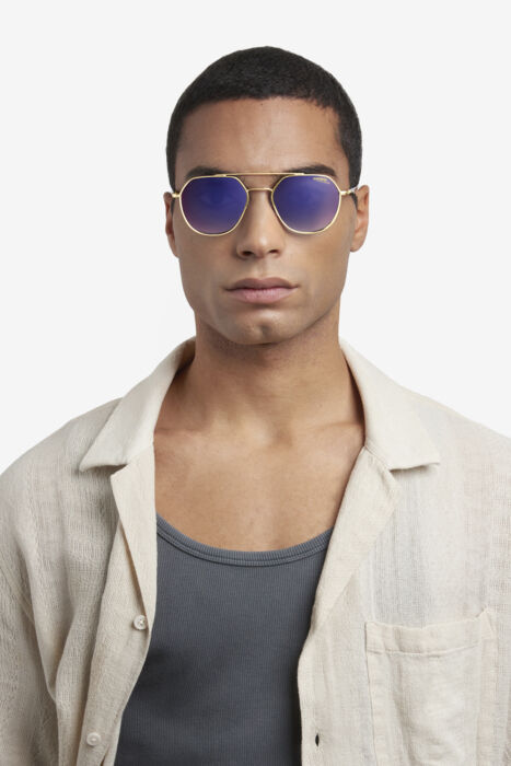 Traditional, sure, but also loaded with the recognisable appeal of Carrera: these stainless-steel sunglasses have a slightly octagonal shape with rounded edges and a double bridge. Comfortable nose pads and acetate covering the iconic fin temples, available even in a multi-layer version, make them perfect for use from morning to evening.