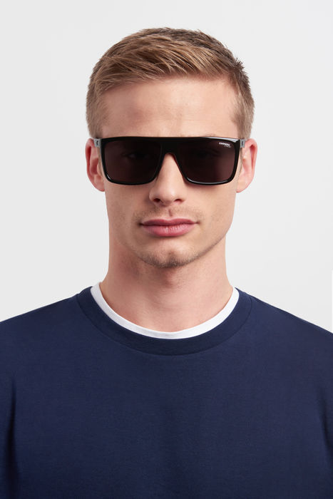 Distinctive and functional, these square sunglasses are imbued with Carrera’s signature sporty aesthetic. The flat-top rectangular frames integrate a lightweight construction in injection-molded polyamide and non-slip rubber grips at the tips for a snug, supportive fit on the move. The brand’s C logo boosts their style credentials.
