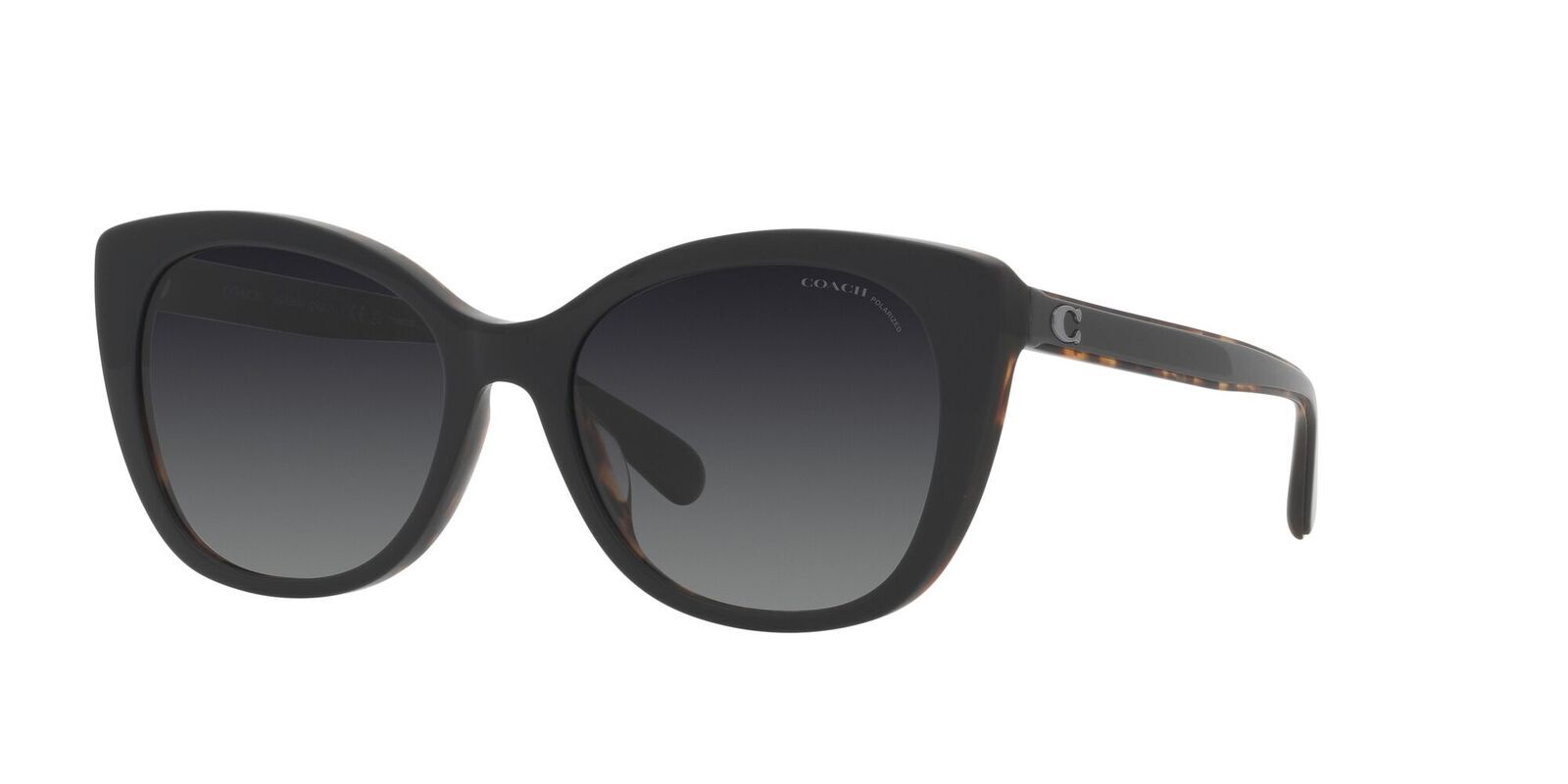 The Coach HC8365Usunglasses combine classic and contemporary elements. The black frames are accented with dark tortoise details, adding a touch of sophistication. The grey gradient polarised lenses offer both style and functionality, providing enhanced clarity and protection against glare. A stylish and practical choice for any occasion.