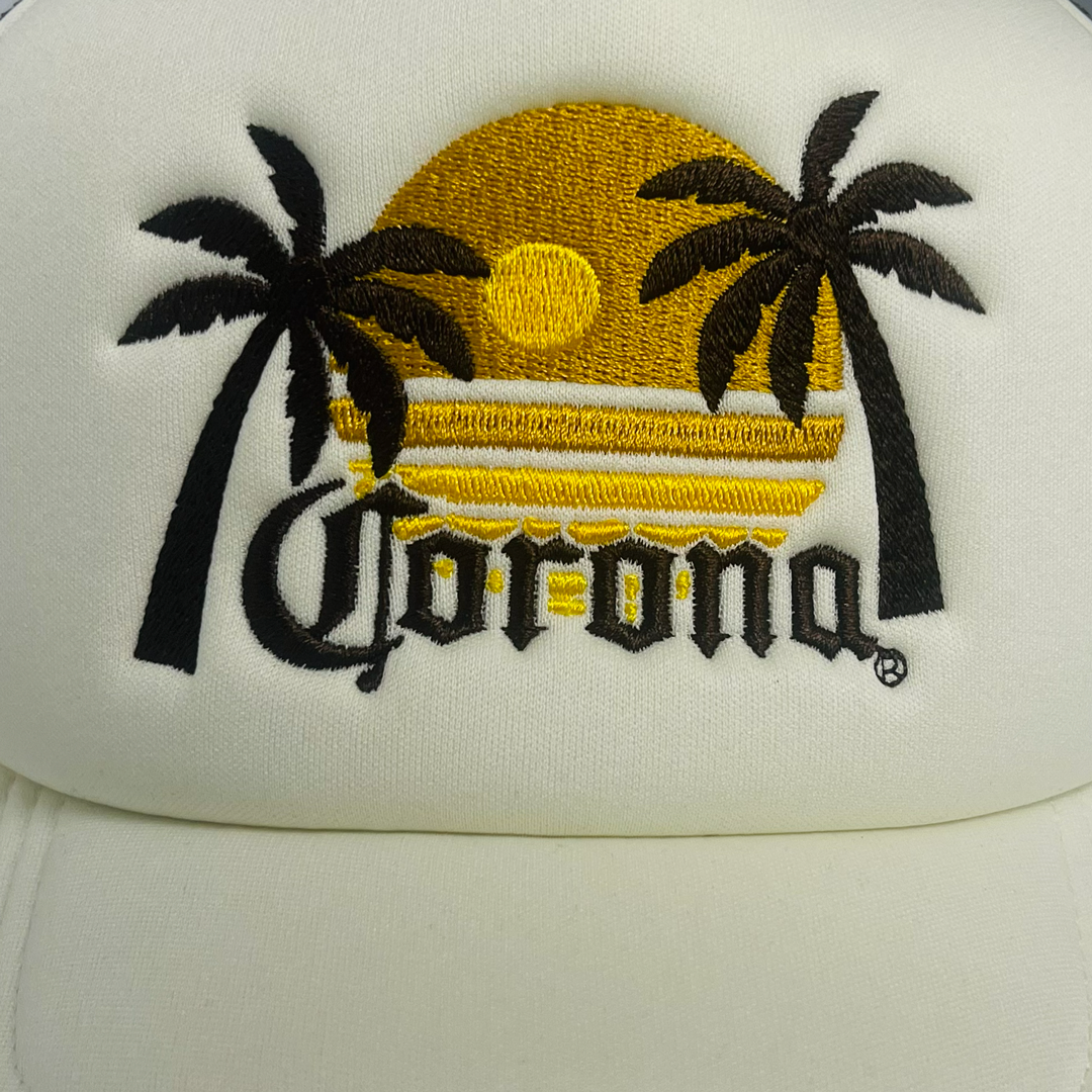 Capture laid-back, sunny vibes with the Gilroy Co. Corona Foamy Trucker Hat in a stylish ivory and chocolate sunset contrast. Featuring the iconic Corona branding and a classic trucker silhouette, this cap blends retro charm with casual style. Its two-tone design adds visual interest, making it perfect for beach days, backyard hangouts, or weekends spent outdoors.
