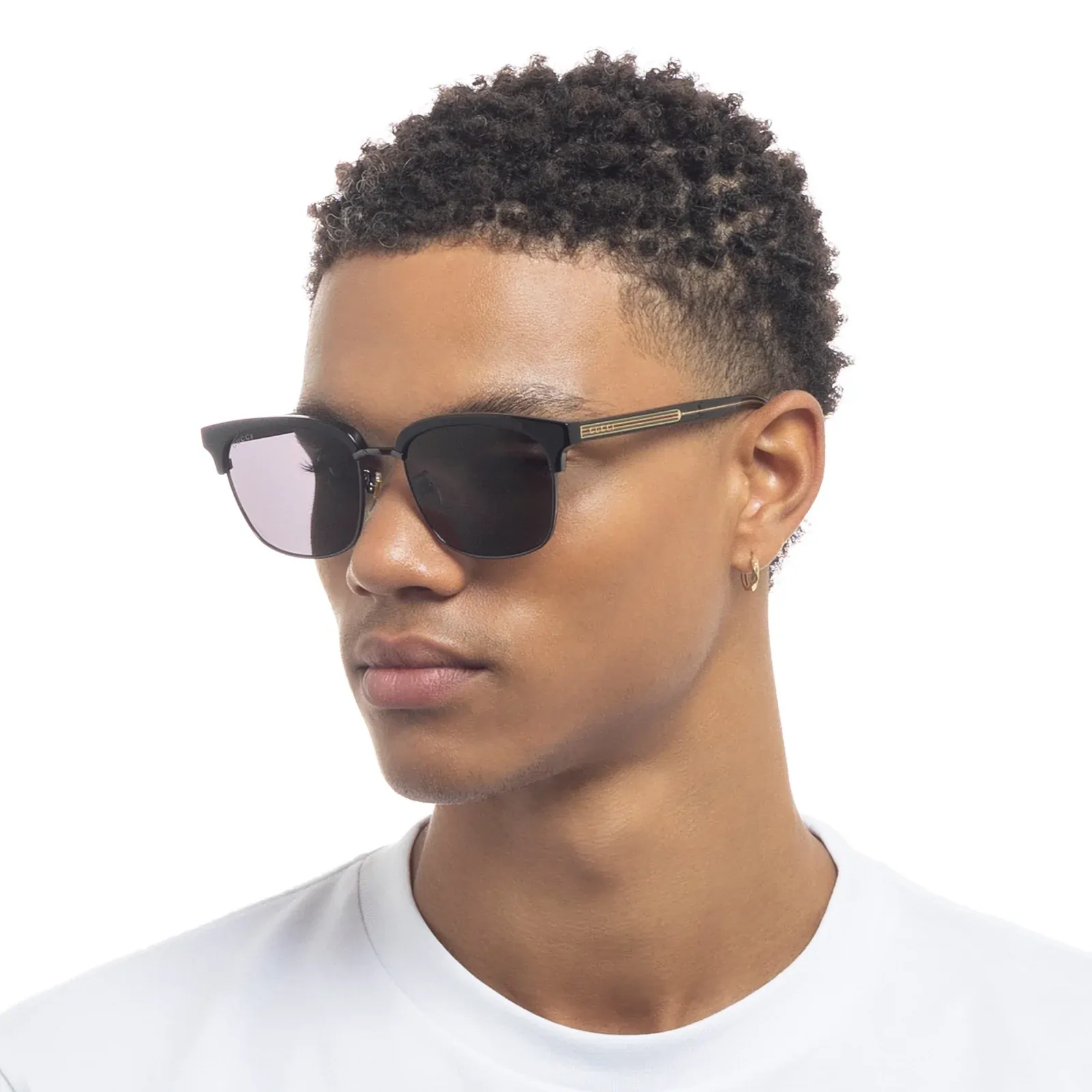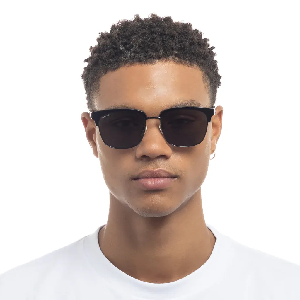 The Gucci GG0382S sunglasses showcase a masculine Clubmaster-inspired silhouette, combining classic design with distinctive Gucci detailing. The structured brow line creates a bold, timeless look, balanced by a refined metal frame for a sophisticated finish. Unique elements elevate the design, including Web and Sylvie motifs subtly integrated into the visible wire core for a striking see-through effect. Blending heritage inspiration with modern craftsmanship, the GG0382S is a versatile statement piece, presented in premium Gucci packaging with a case and cleaning cloth. It offers a confident profile that feels polished and enduring.
