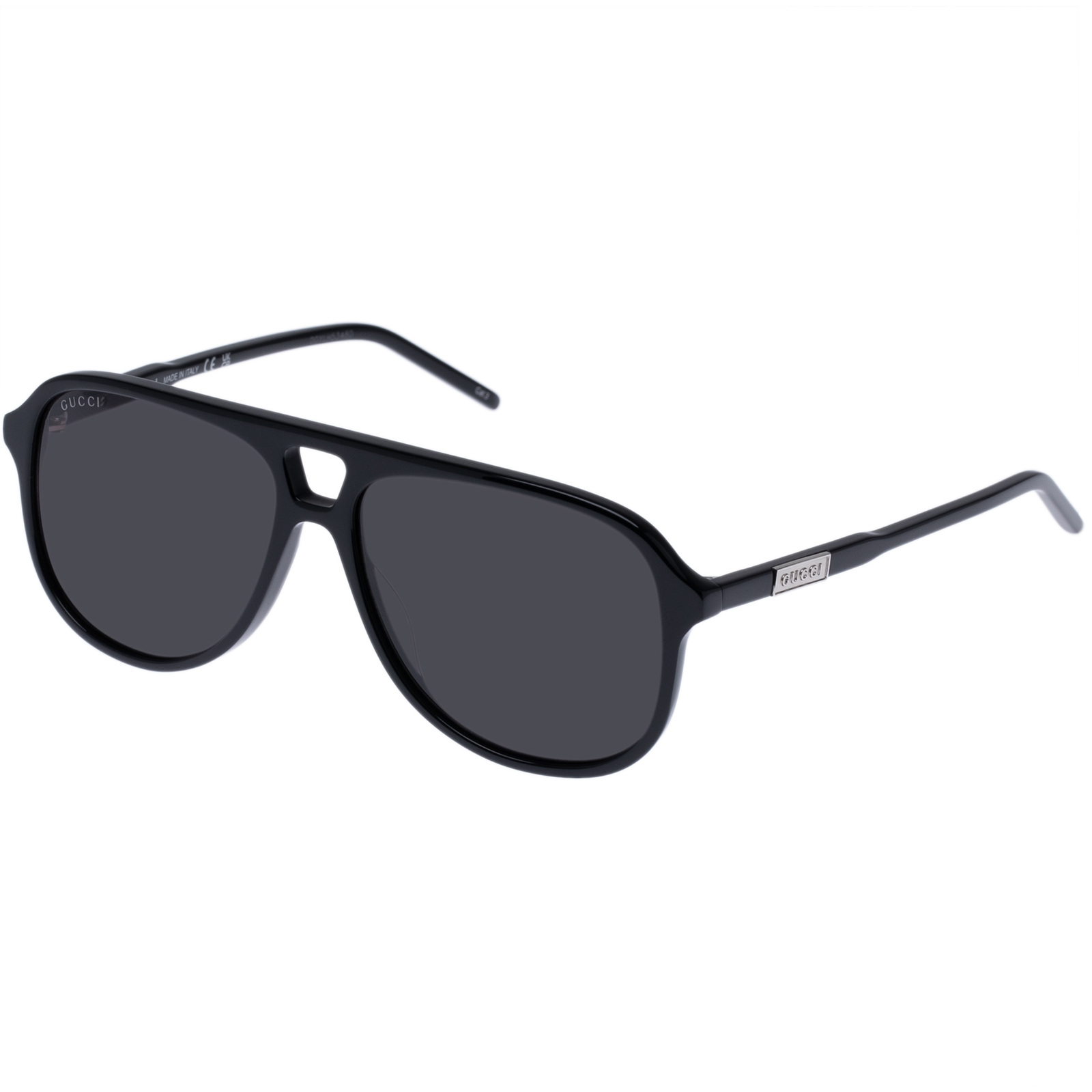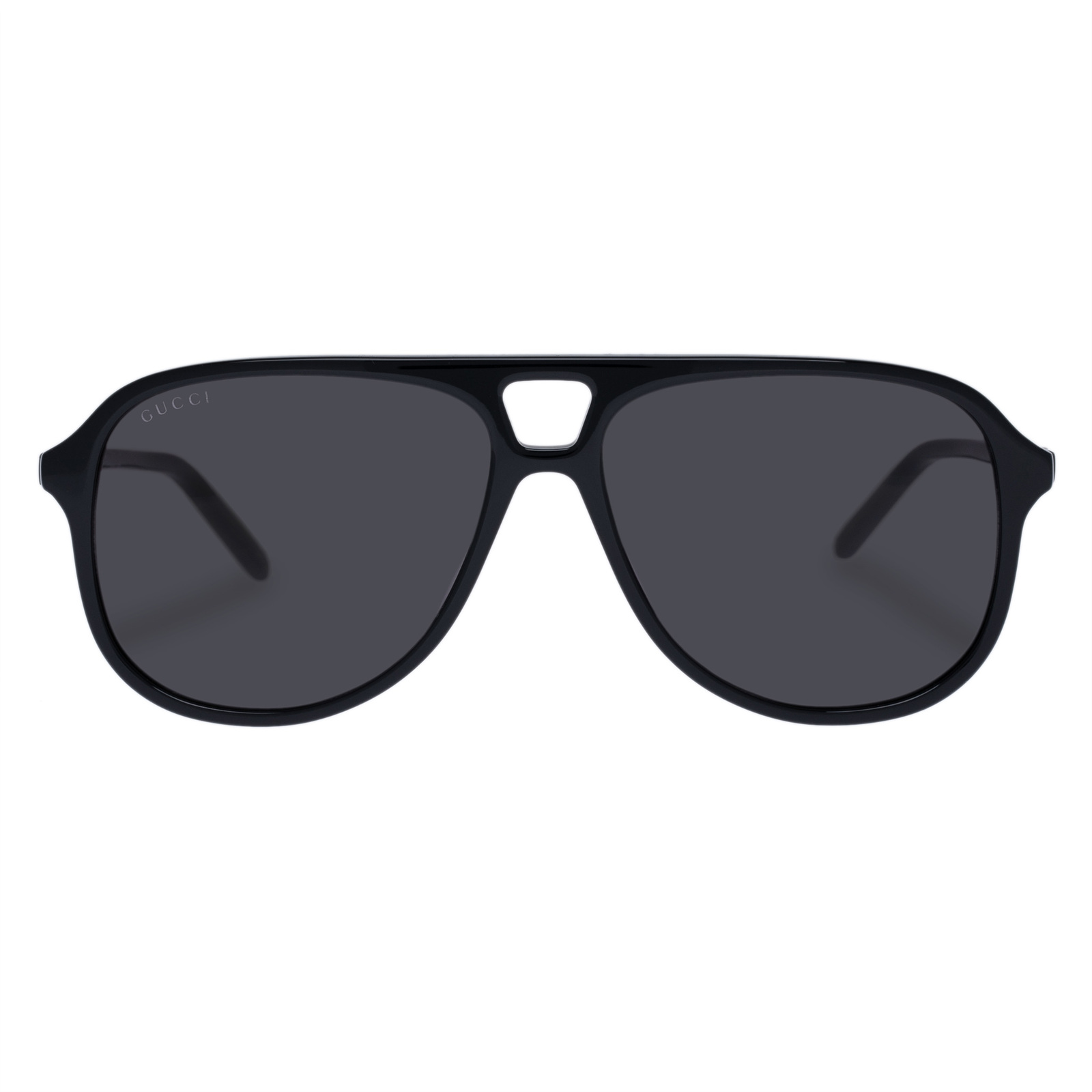 Classic and vintage look presenting an easy-to-wear masculine pilot shape with a precious element in full acetate. Gold plaque detail on both temples with the Gucci lettering logo written on it.