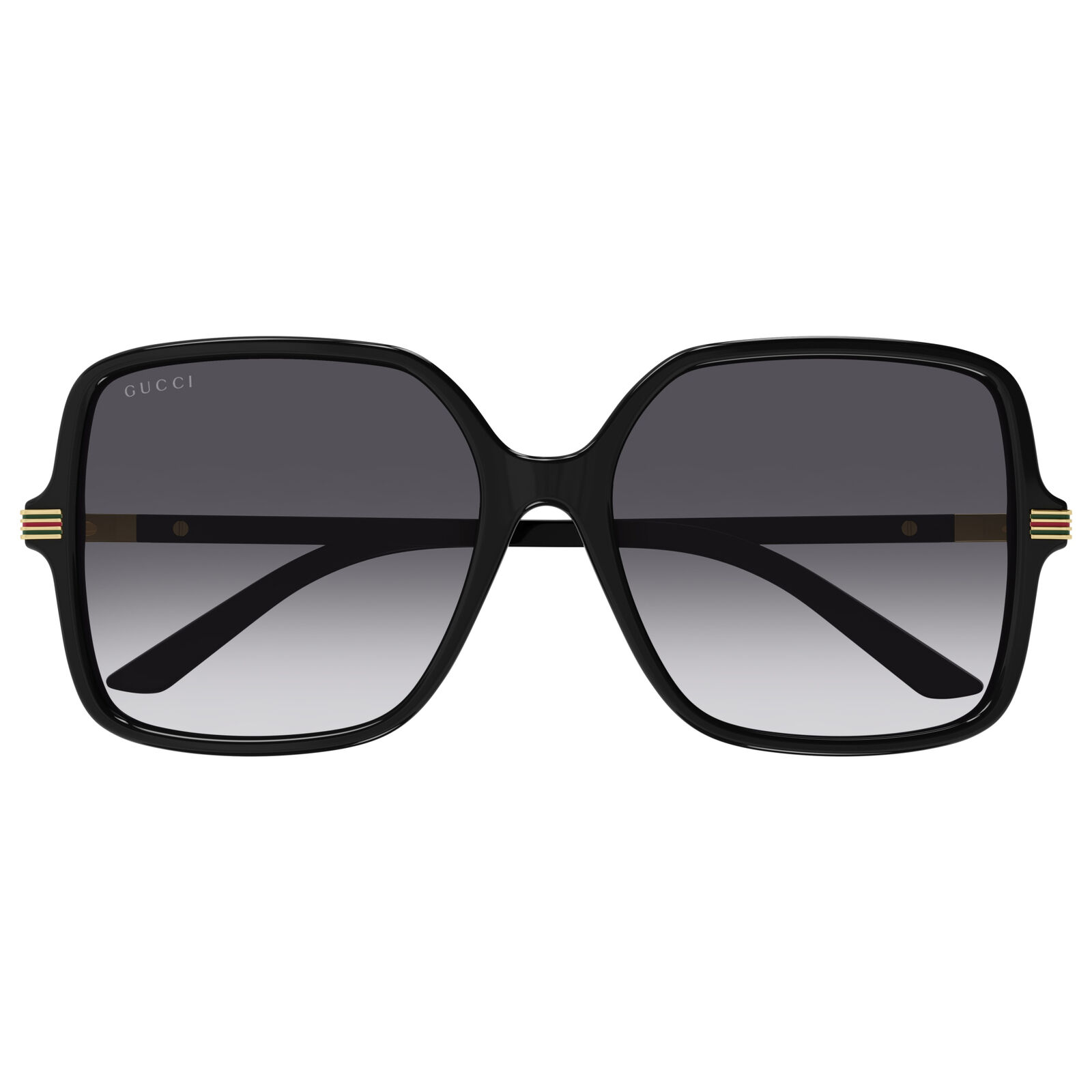 Inspired by 70s details and styling, the Gucci GG1448SA sunglasses capture a vintage feel through an enameled metal hinge detail that echoes the brand's Web motif. The oversized squared silhouette is crafted in light acetate, giving it a strong look with a comfortable wear. A lasered Gucci lettering logo on the temple plaque adds a polished signature finish. Presented in premium Gucci packaging with a case and cleaning cloth, this frame combines retro influence with modern refinement. Its generous proportions create a bold but elegant profile.
