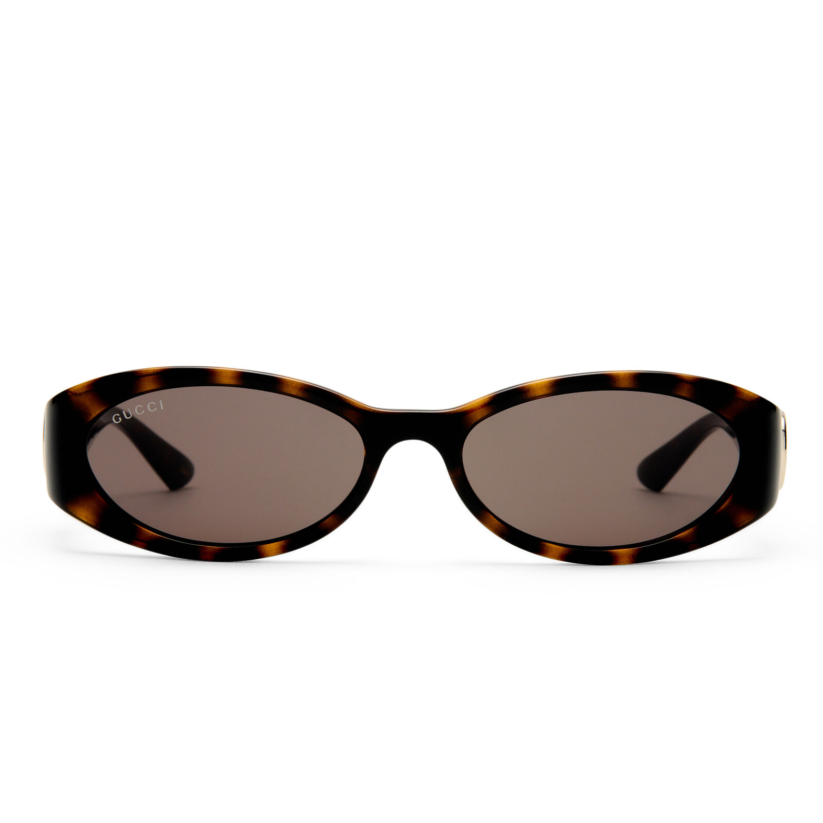The Gucci GG1660S sunglasses draw inspiration from archival designs, featuring an injected construction that delivers a lightweight and modern feel. The soft almond-shaped silhouette offers a feminine and slightly retro aesthetic, creating a look that is both distinctive and easy to wear. A unique cut-out interlocking logo on the temples adds a signature Gucci element, enhancing the design with subtle branding. This model combines heritage influence with contemporary execution, resulting in a refined yet playful eyewear piece. The shape feels elegant while still carrying a relaxed, wearable character.