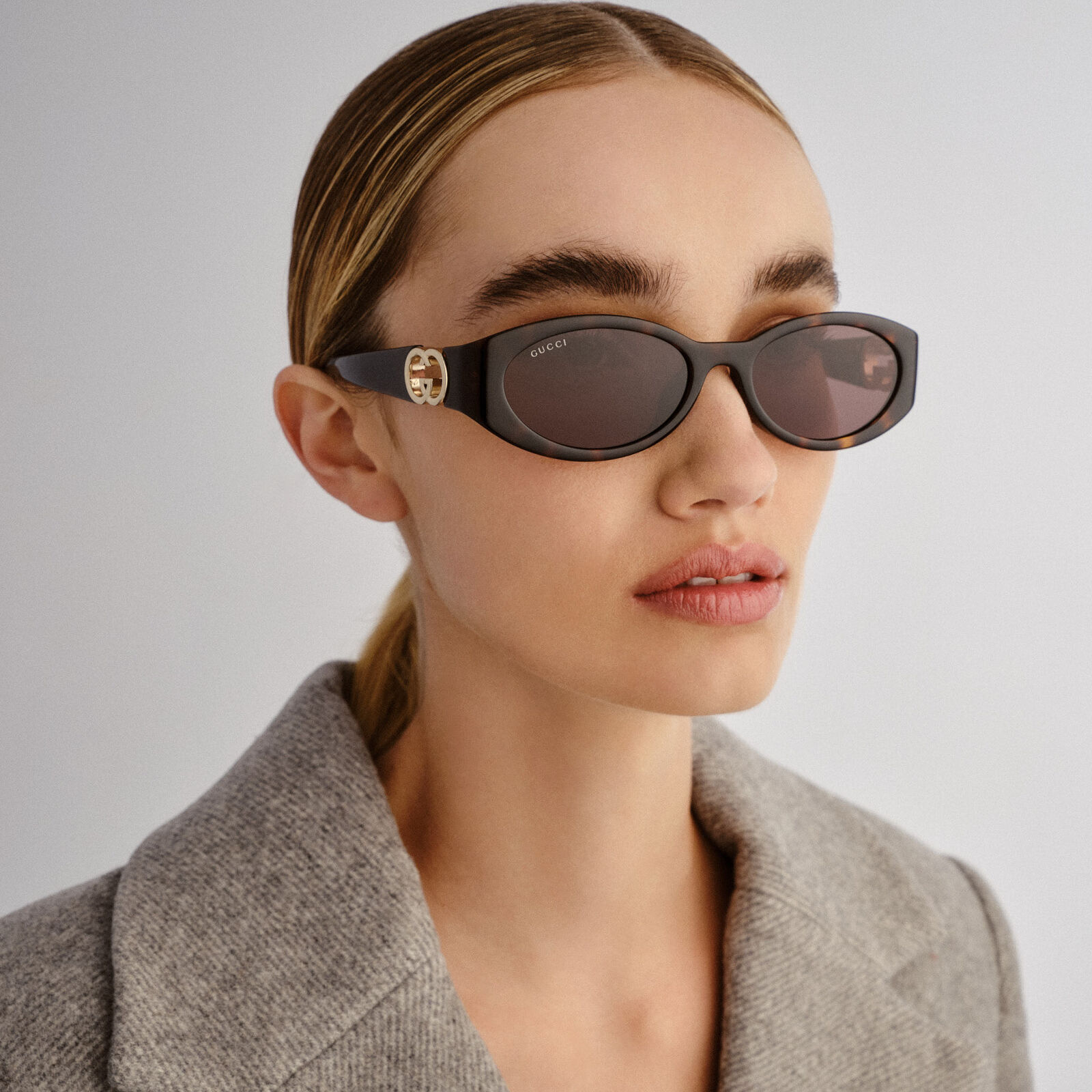 Sophisticated with a statement edge, the Gucci GG1662SA sunglasses embody bold femininity and refined Italian craftsmanship. The sculpted oval silhouette draws inspiration from vintage glamour, reinterpreted through a modern lens for a look that feels both elegant and current. Clean lines and considered detailing give the frame a polished, distinctive finish. Presented in premium Gucci packaging with a case and cleaning cloth, this style offers a confident balance of luxury and wearability.