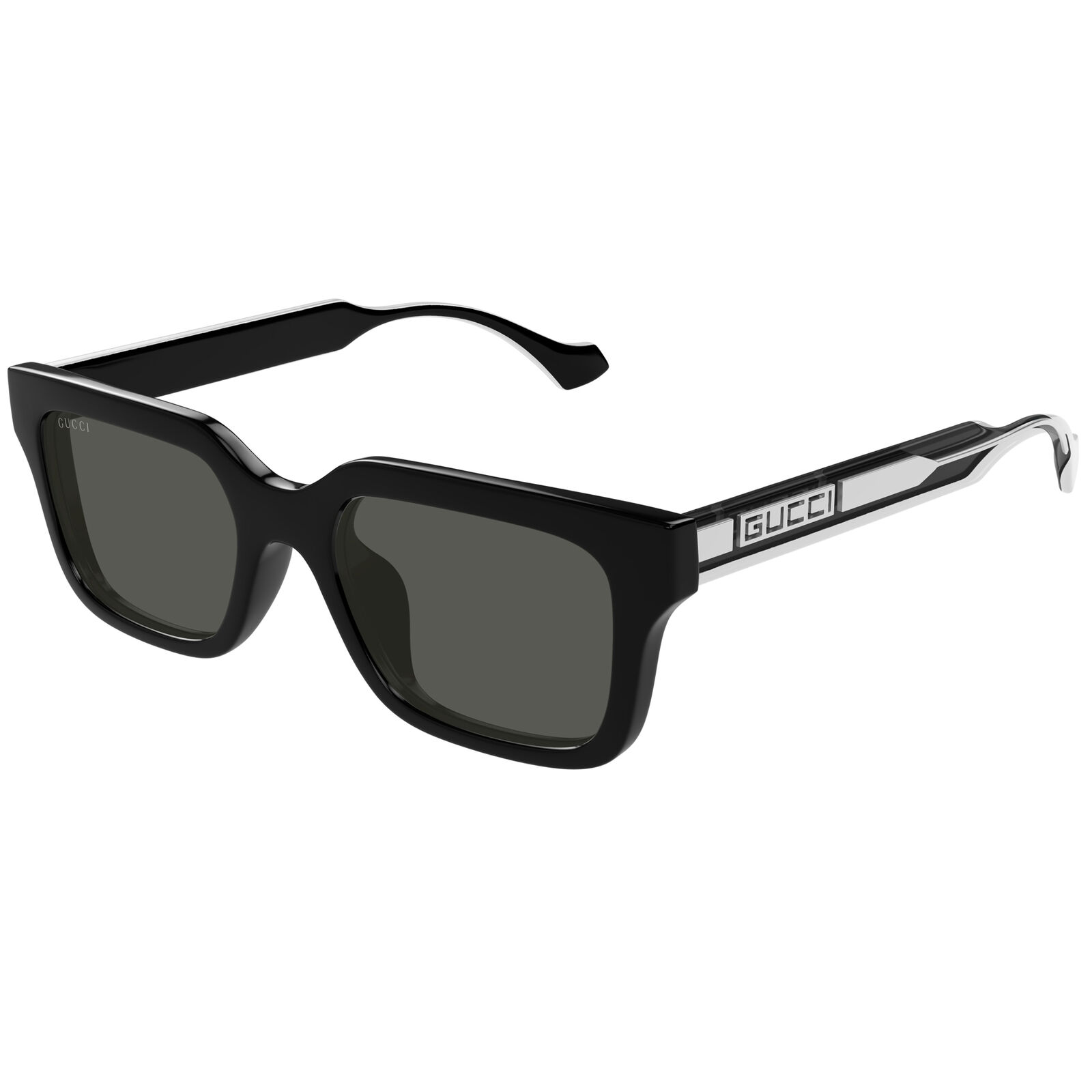A true testament to Gucci’s craftsmanship, the transparent temples reveal the iconic Gucci lettering logo, appearing to float seamlessly within the frame’s construction. Finished in a sleek palette of masculine tones, these sunglasses embody timeless elegance, perfect for those who appreciate understated luxury and innovative design.