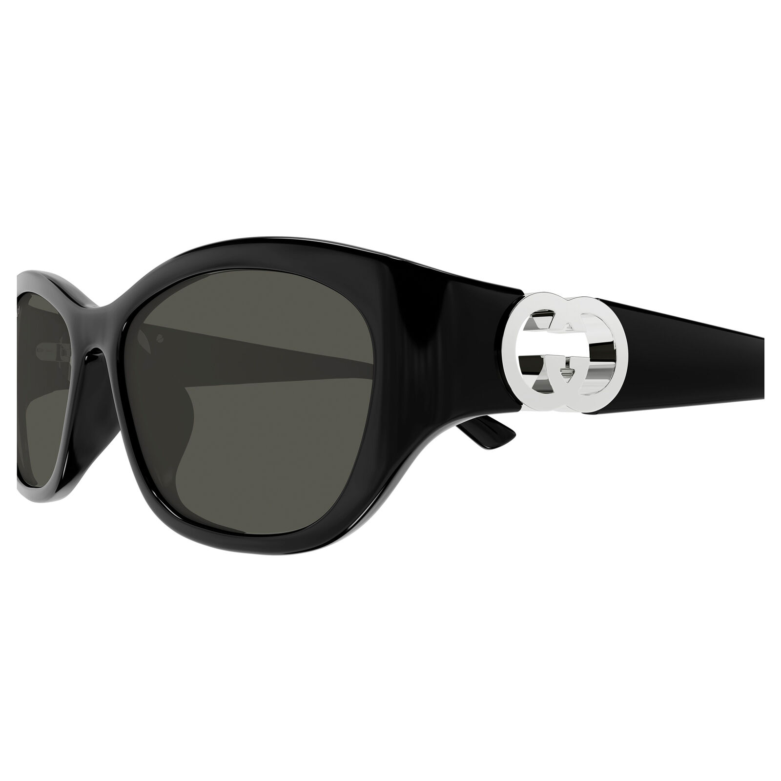 The Gucci GG1826SK sunglasses draw inspiration from 90s design with a soft cat-eye silhouette that offers a feminine yet modern look. The acetate construction ensures durability while maintaining a comfortable and lightweight feel. A cut-out interlocking GG logo at the hinge adds a distinctive and recognisable element. Designed with a Korean fit, this model combines vintage influence with contemporary comfort and style. Its shape feels sleek and easy to integrate into everyday wear.
