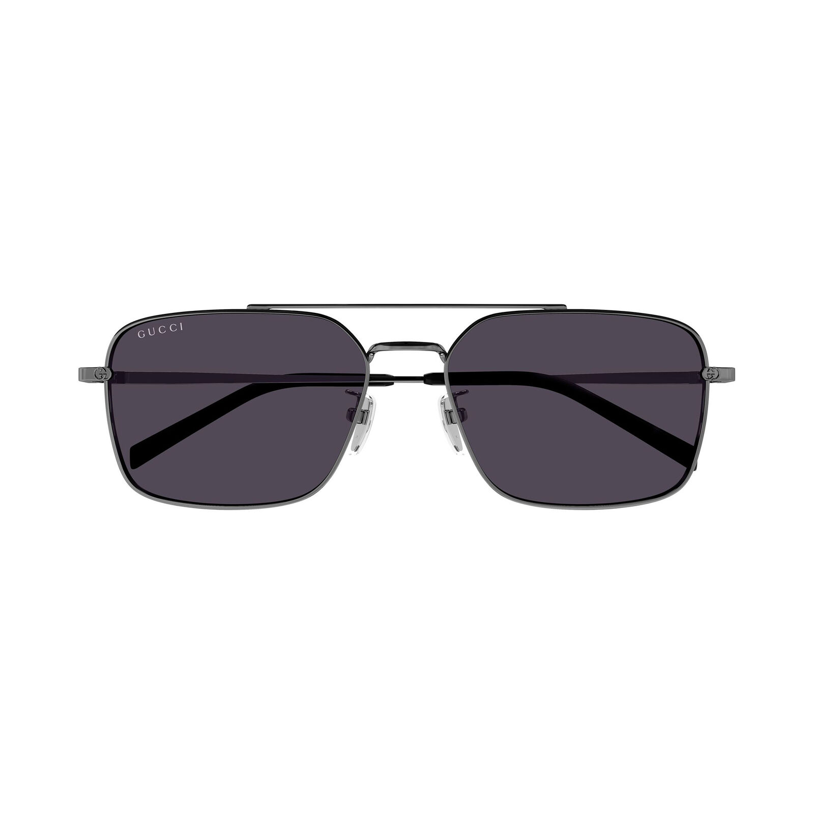 Light metal construction and an engraved interlocking G logo on the front give the Gucci GG1957SA a refined yet modern feel. The caravan double-bridge shape creates a strong masculine profile, while the lettering logo lasered on the temple adds a clean signature detail. Cool and trend-led, this style combines solid and Guccissima lens options for a distinctive finish. Presented in premium Gucci packaging with a case and cleaning cloth, it offers a polished statement with everyday versatility. The slim metal structure keeps the look sharp and sophisticated.