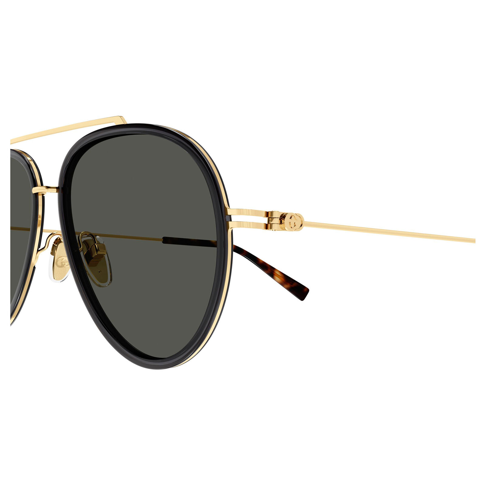 The Gucci GG1981S combines a lightweight metal construction with thin acetate running around the lenses and ear tips for a truly embellished look. The pilot shape gives the frame a classic yet contemporary profile, while the elegant interlocking G detail on the hinge adds a refined signature touch. This style blends sleek construction with decorative elements for a polished and modern finish. It feels both elevated and easy to wear, making it a versatile addition to the collection.