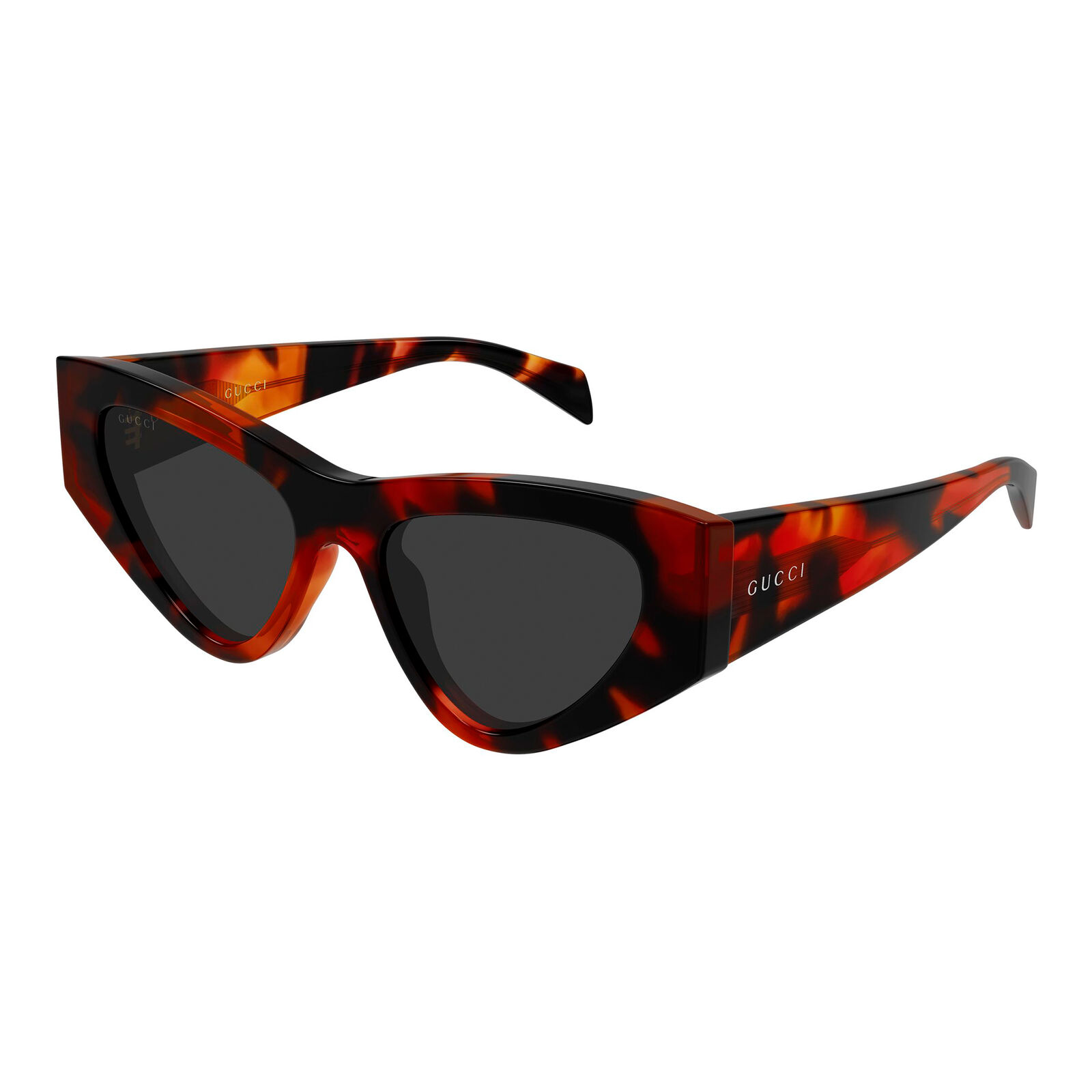 Reflecting a refined luxury aesthetic, the Gucci GG2019S sunglasses are defined by sleek cat-eye lenses and a chunky acetate frame. Premium silver-tone branding is engraved on the side, adding a polished signature detail that complements the bold silhouette. The shape feels contemporary and elevated, making it a strong choice for fashion-led styling. Its sculpted proportions give it a sophisticated and confident finish.