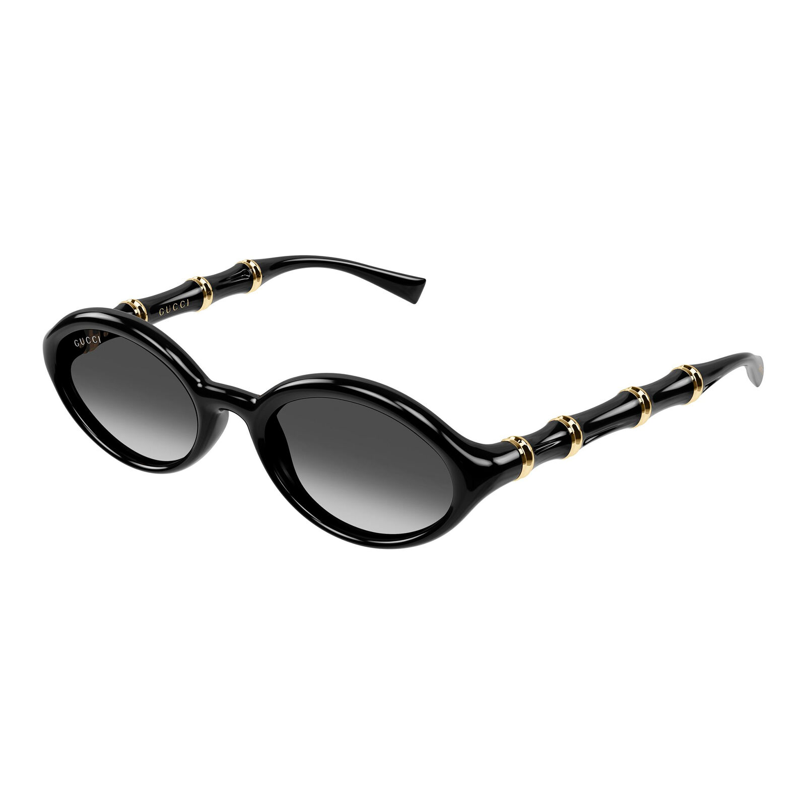 The Gucci GG2059S is defined by an oval frame shape and distinctive metal-embellished bamboo motifs on the temples. Crafted from acetate, these luxury sunglasses deliver a sleek 90s-inspired look with a soft and wearable silhouette. The rounded shape keeps the style approachable, while the signature detailing adds a strong Gucci identity. This frame offers a refined balance of retro influence and contemporary polish. Its compact shape gives it a neat and elegant finish.