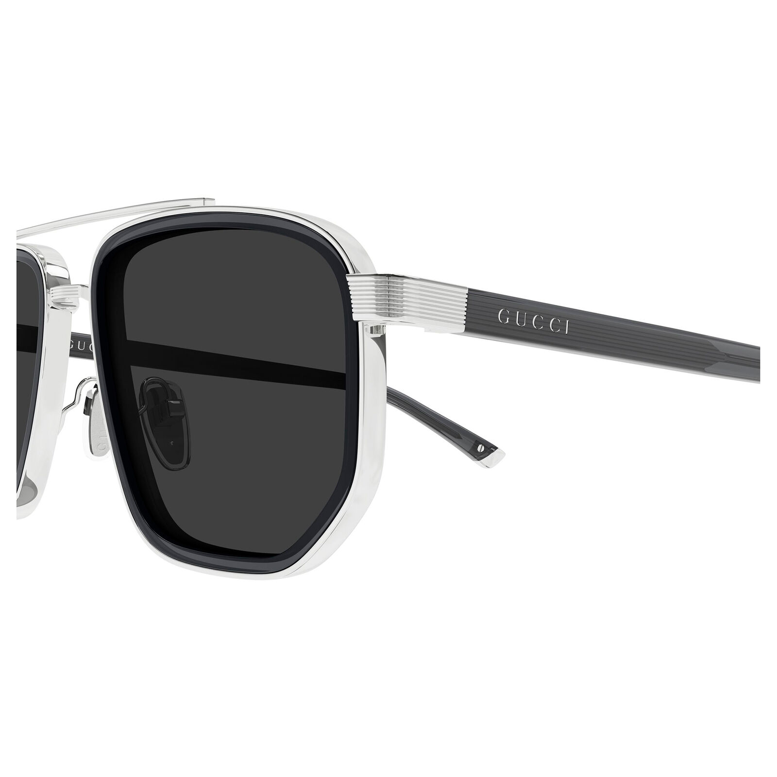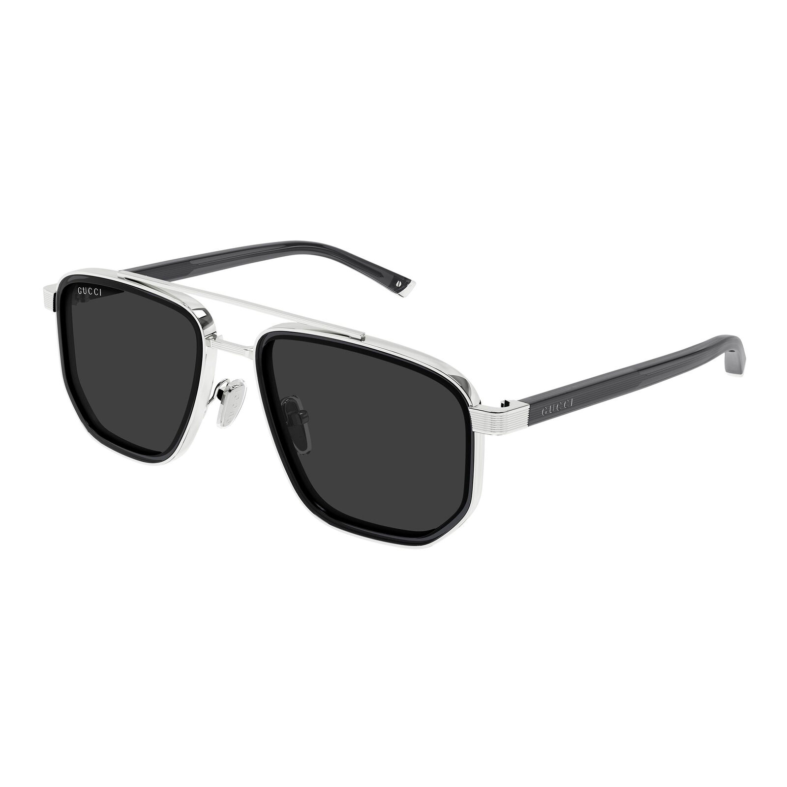 The Gucci GG2073S sunglasses are a modern, luxurious take on the classic aviator style, featuring a double-bridge metal frame and a distinctive double-construction design. In many versions, tortoiseshell acetate detailing adds extra depth and contrast, giving the frame a richer visual character. The iconic Gucci logo on the temples reinforces the premium finish. This model combines familiar aviator shaping with elevated contemporary detailing for a refined everyday look. Its strong lines give it a sleek, modern presence.