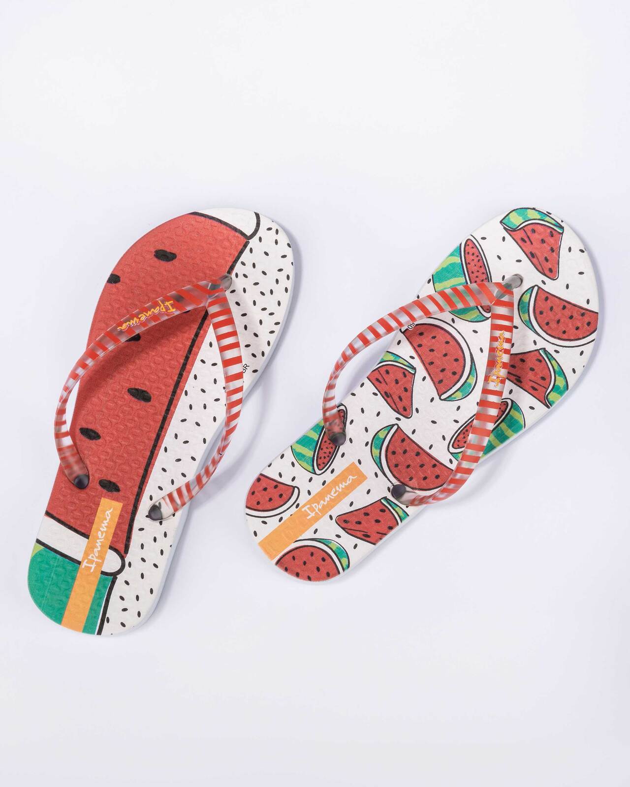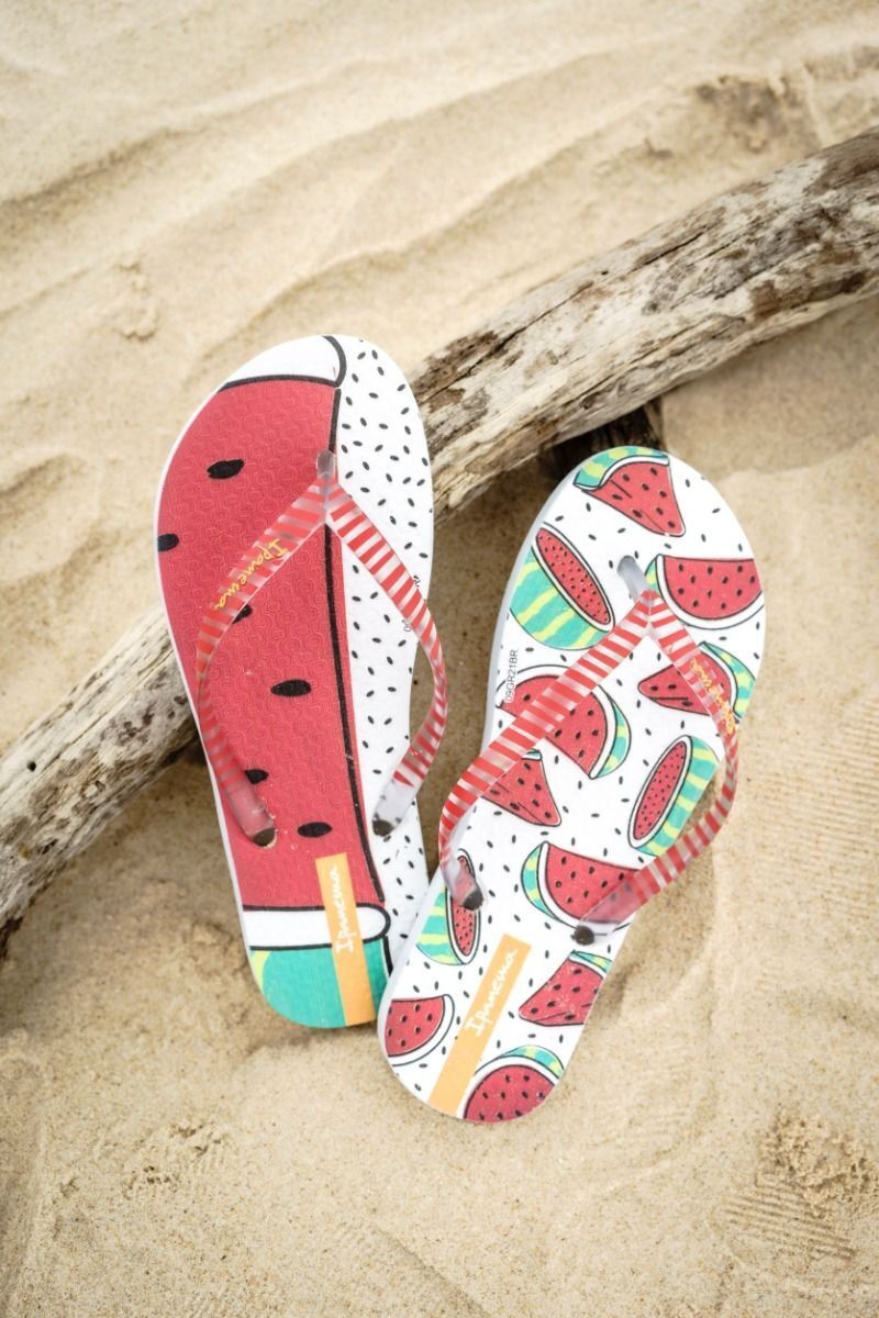 The Ipanema Sabores flip-flops bring fun and colour to the fruit world. Pineapples and watermelons are printed on the sole and transparent straps for a further touch of delicacy. Comfort and high spirits accompanying you at every step!
