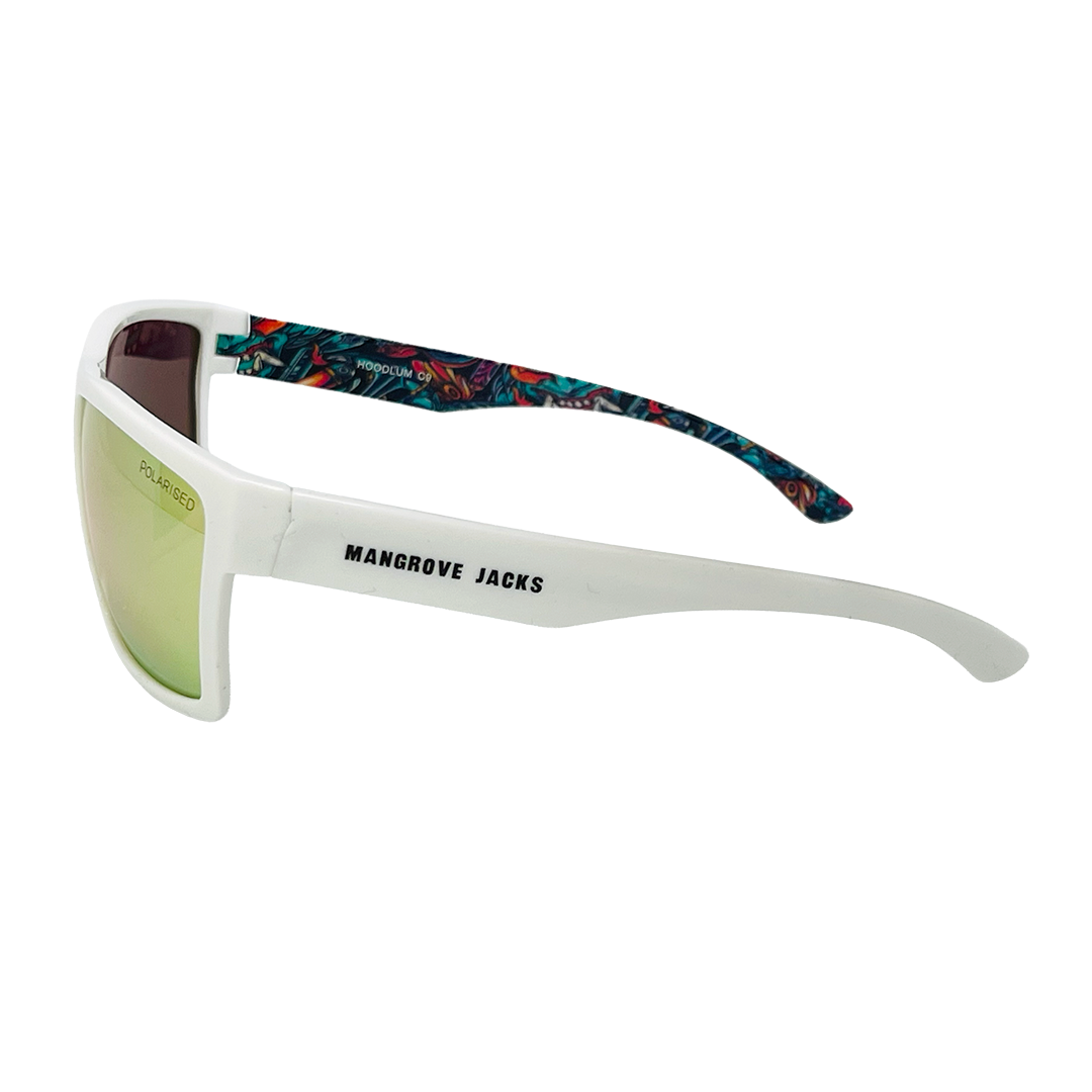 Mangrove Jacks Hoodlum C9 White w Temple Print / Ice Pink Revo Polarised Lenses