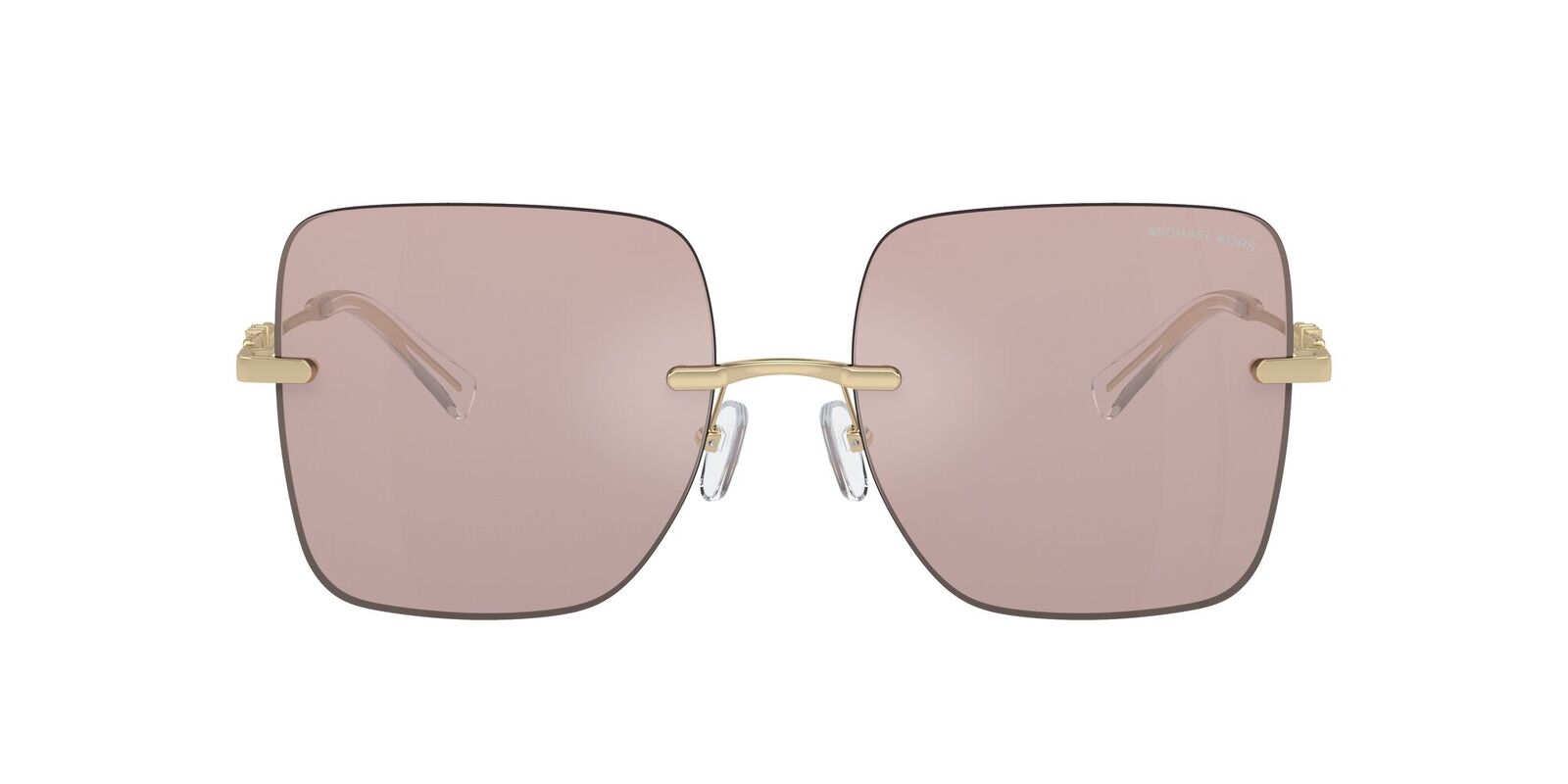 Introducing the Michael Kors Québec sunglasses in a Gold and Pink Mirror Lenses, a playful and eye-catching look that's perfect for those who love to stand out. The elegant square lens shape is beautifully complemented by the curved chain detail adorning thin temples. The metal frame material is lightweight and creates a sleek feel to this glam aesthetic. Elevate your style game with the Michael Kors Québec for a refined and contemporary eyewear choice.