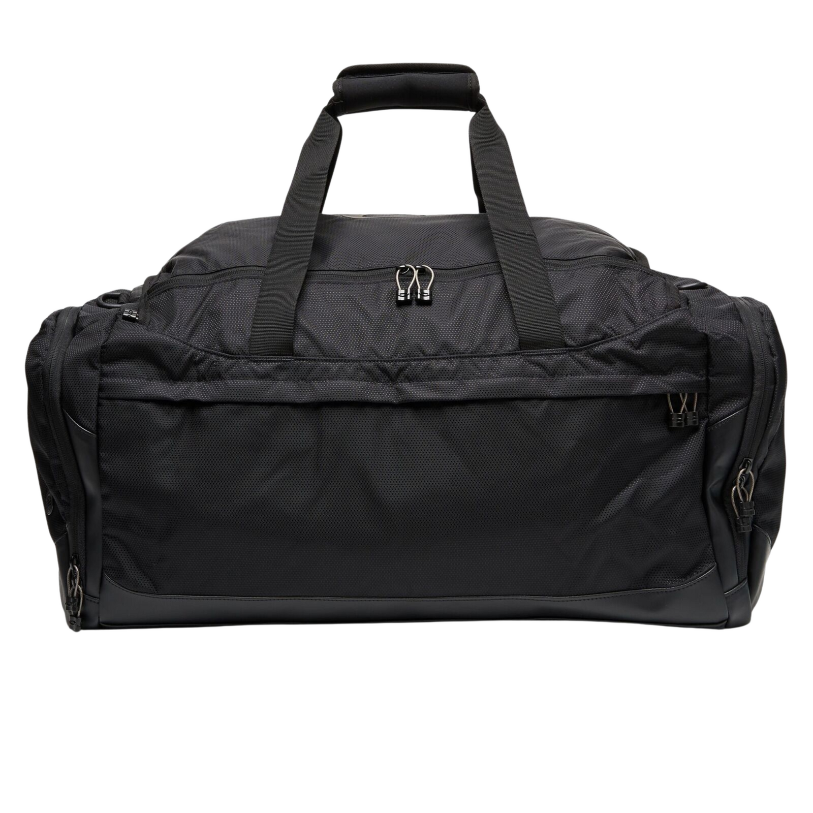 - Duffle bag with ergonomic carrying handles and an adjustable, detachable messenger strap