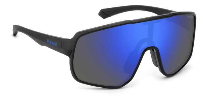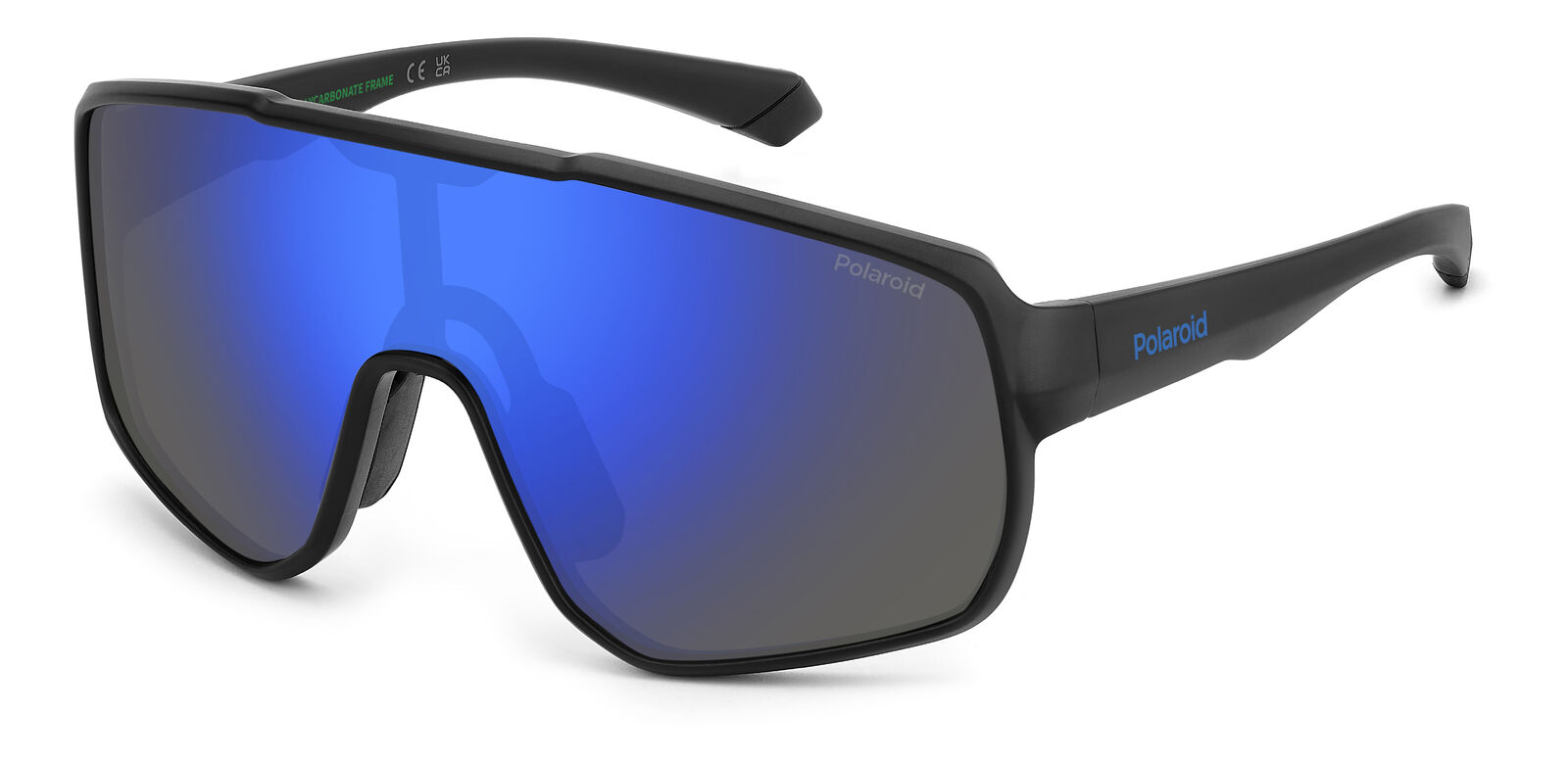 Frame Colour: Matte Black Lens Colour: Blue Mirror Frame Material: Polycarbonate Lens Material: Polycarbonate Lens Technology: Polarised Lens Category: Category 3 Fit: Small Shape: Shield
