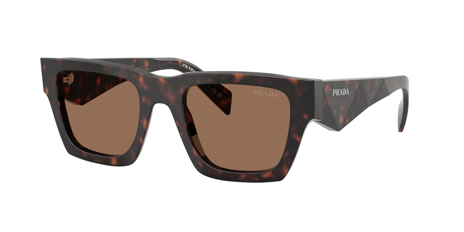 The PRA06S sunglasses put Prada’s iconic triangle front and centre, transforming a simple three-sided shape into a bold brand statement. Designed for men, the style combines a classic silhouette with sculpted geometric temples, where multiple triangles create depth and feature the Prada lettering logo for a striking, contemporary finish.