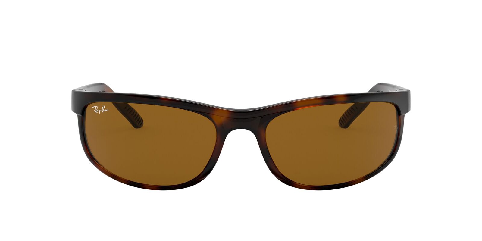 Ray-Ban RB227 Predator 2 sunglasses take on the traditional Rectangle Sunglasses design with a Ray-Ban signature logo that is displayed on the thin temples. The inside of the Predator temple tips feature a subtle, striped texture treatment. Their wrapped fit creates a sporty look that is both casual and athletic.