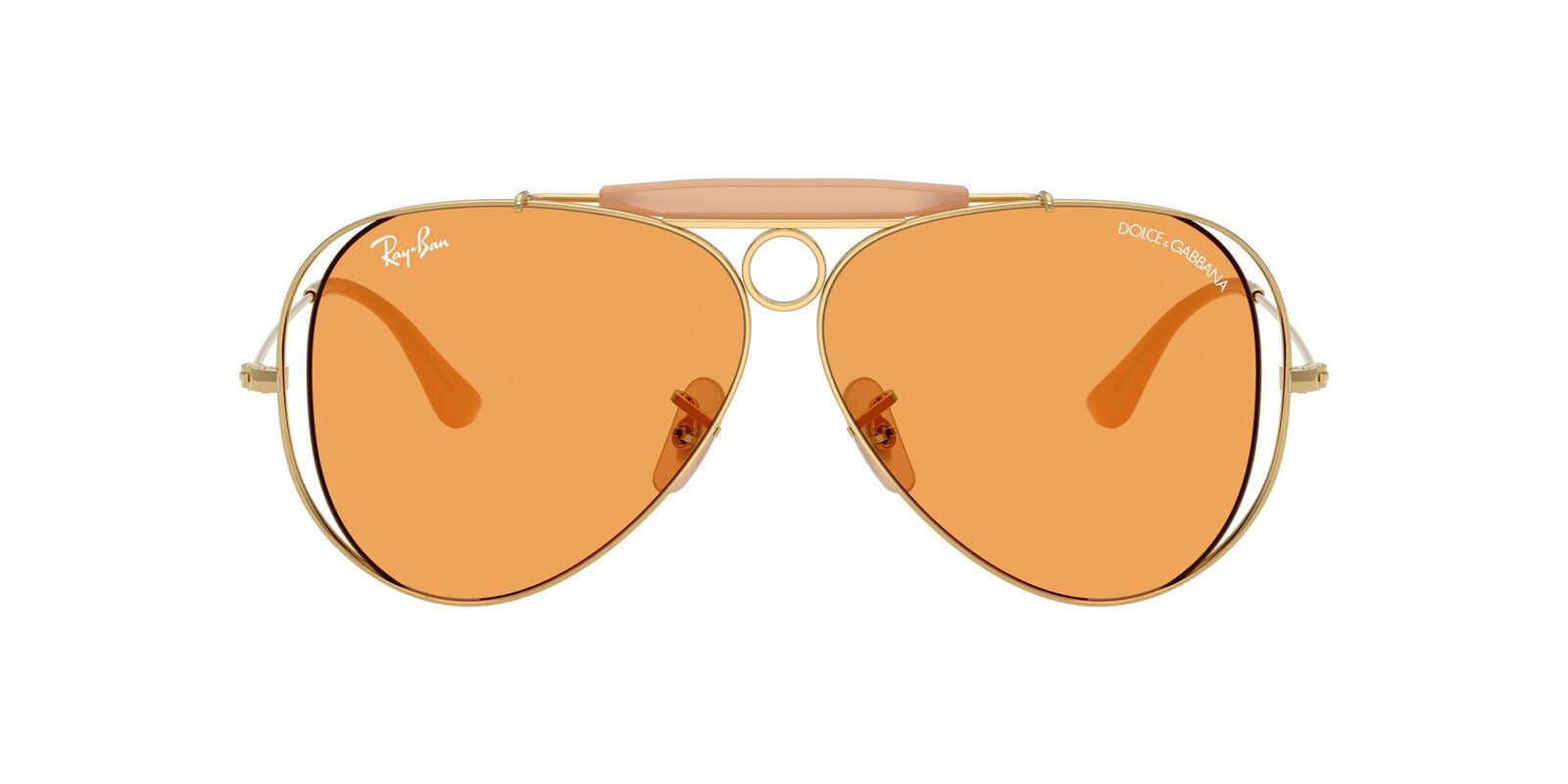 The Ray-Ban The Shooter by Dolce & Gabbana RB3138M sunglasses reimagine an archival icon with a bold fusion of heritage and high-fashion design. Rooted in the classic aviator family, this distinctive silhouette is elevated with unique structural elements, including the signature brow bar and circular bridge detail, delivering a look that is both instantly recognisable and fashion-forward.