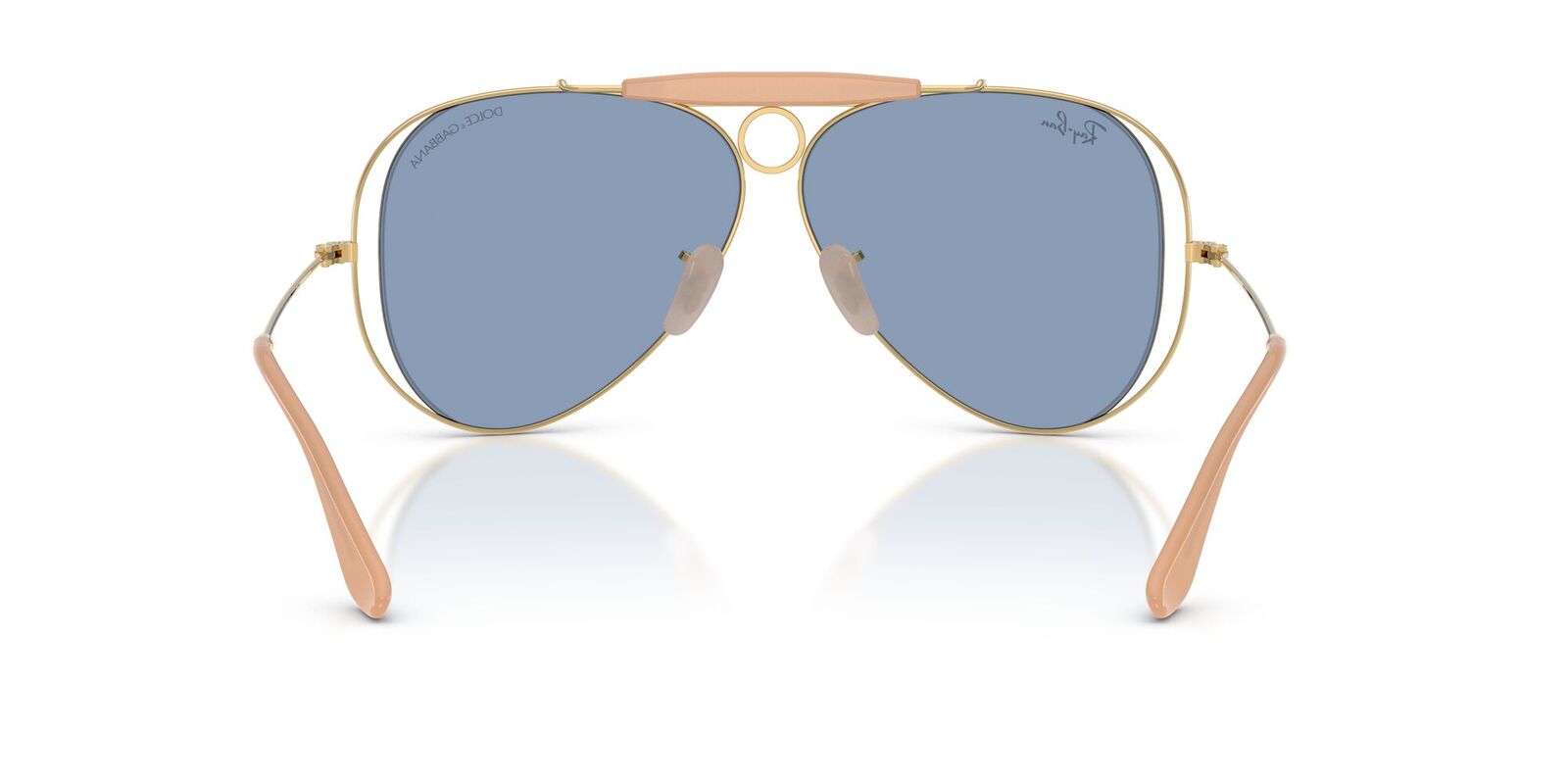 The Ray-Ban The Shooter by Dolce & Gabbana RB3138M sunglasses reimagine an archival icon with a bold fusion of heritage and high-fashion design. Rooted in the classic aviator family, this distinctive silhouette is elevated with unique structural elements, including the signature brow bar and circular bridge detail, delivering a look that is both instantly recognisable and fashion-forward.