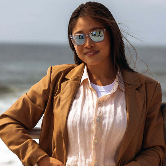The Cove sunglasses combine style and functionality with their lightweight handmade acetate frame, designed to provide a secure fit through beta titanium flex temples. The transparent frame adds a contemporary touch, making these sunglasses a versatile accessory for any occasion. Their modern silhouette ensures that you’ll look great while enjoying the outdoors.