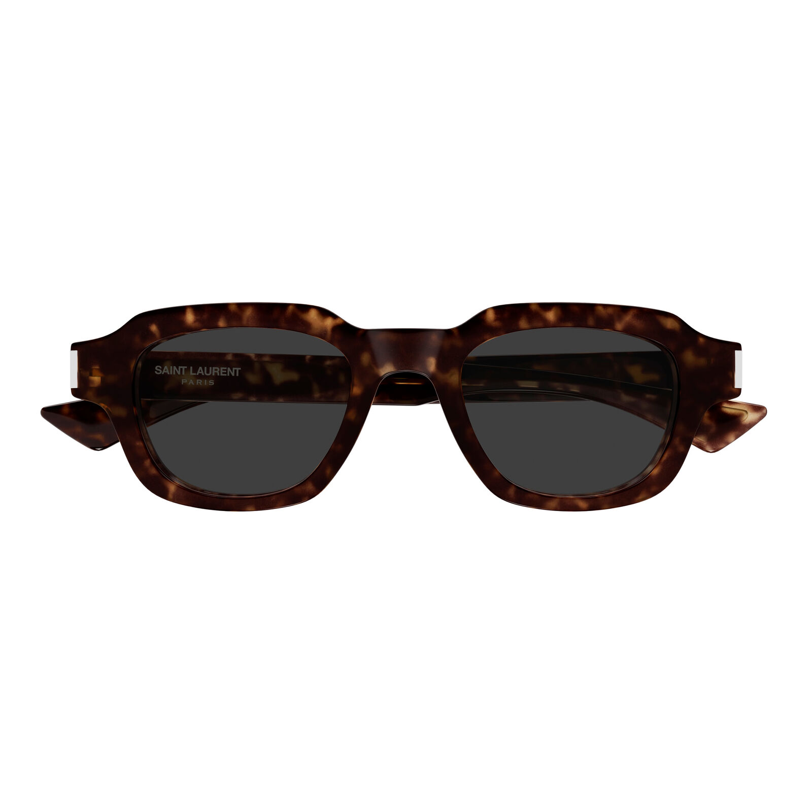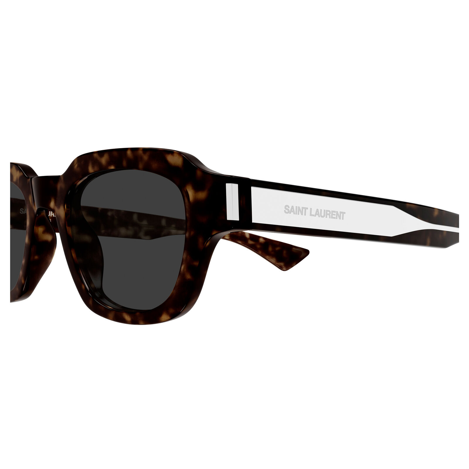 Crafted from high-quality acetate with a super-shiny resin finish, the frame reveals a distinctive metal wire core shaped like an arrow, an artful detail that adds depth and sophistication. The engraved Saint Laurent logo completes the design, making the SL791 a statement of understated luxury and contemporary craftsmanship.