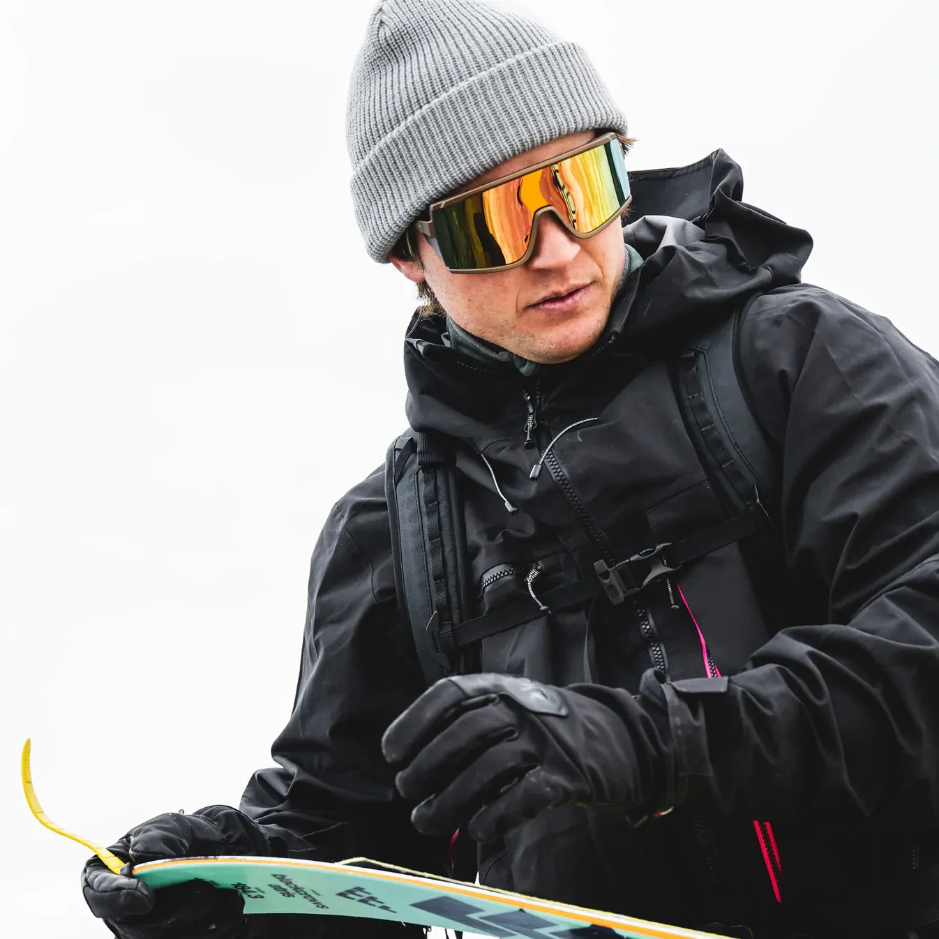 - Snow goggle-inspired retainer strap
