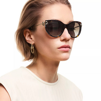 The Tiffany & Co. TF4232 sunglasses feature a chic butterfly shape, offered in both classic and feminine palettes. This design incorporates Tiffany’s signature HardWear gauge links, which wrap around the front of the bio-acetate frame, adding a bold, fashionable touch. The gauge links also serve as functional hinges, seamlessly blending style with practicality. This piece captures Tiffany's iconic elegance and commitment to luxury craftsmanship.